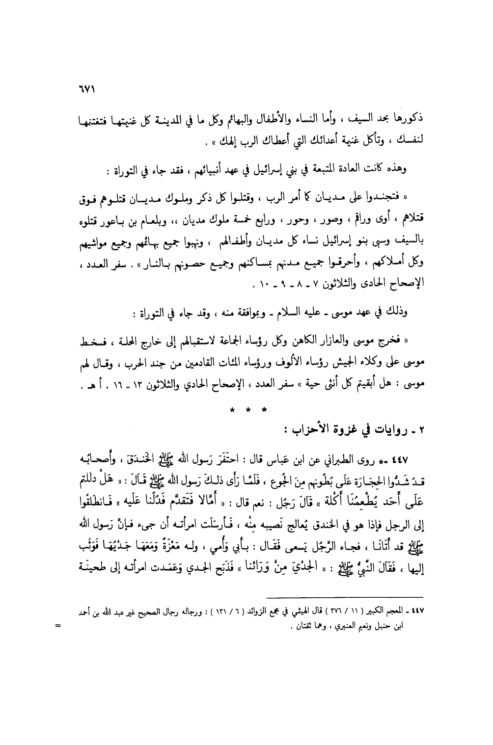 "فخرج موسى والعازار الكاهن وكل رؤساء الجماعة لاستقبالهم إلى خارج المحلة، فسخط موسى على وكلاء الجيش رؤساء الألوف ورؤساء المئات القادمين من جند الحرب، وقال لهم موسى: هل أبقيتم كل أنثى حية" سفر العدد، الإصحاح الحادي والثلاثون 13 - 16. أهـ.