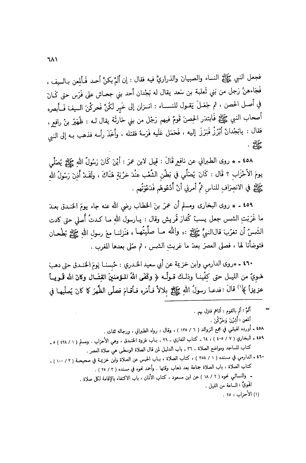 459 - البخاري (7/ 405)، 64 - كتاب المغازي - 29 - باب غزوة الخندق، وهي الأحزاب. ومسلم (1/ 438) 5 - كتاب المساجد ومواضع الصلاة - 36 - باب الدليل لمن قال الصلاة الوسطى هي صلاة العصر.