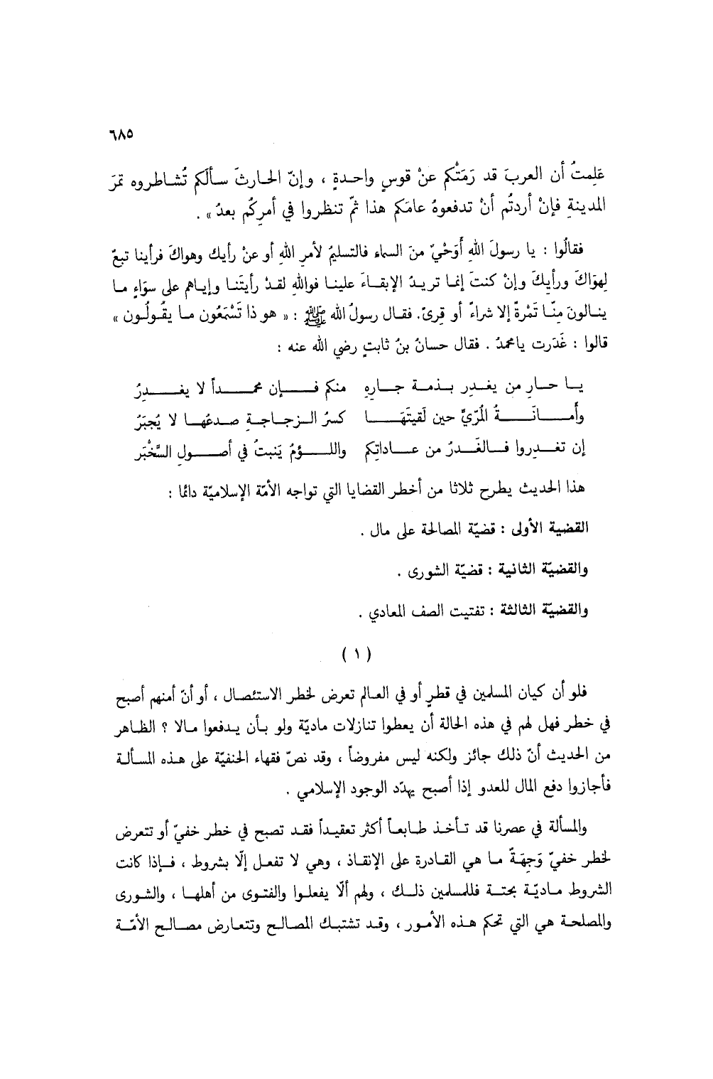 هذا الحديث يطرح ثلاثاً من أخطر القضايا التي تواجه الأمة الإسلامية دائماً: