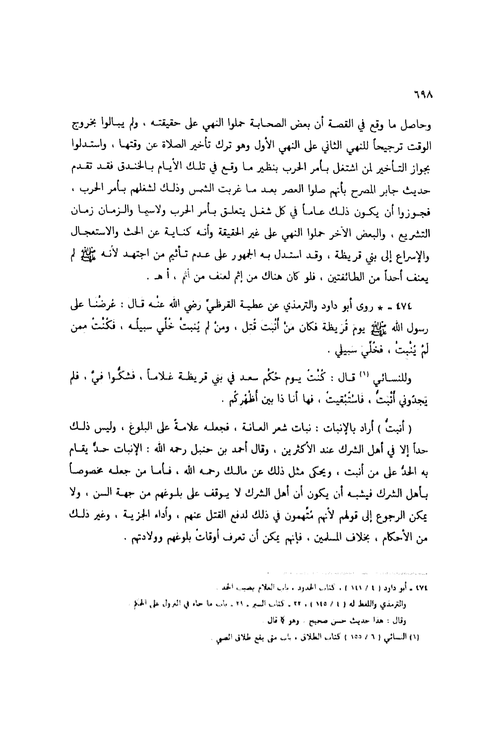 474 - * روى أبو داود والترمذي عن عطية القرظي رضي الله عنه قال: عرضنا على رسول الله صلى الله عليه وسلم يوم قريظة فكان من أنبت قتل، ومن لم ينبت خلي سبيله، فكنت ممن لم ينبت، فخلي سبيلي.
