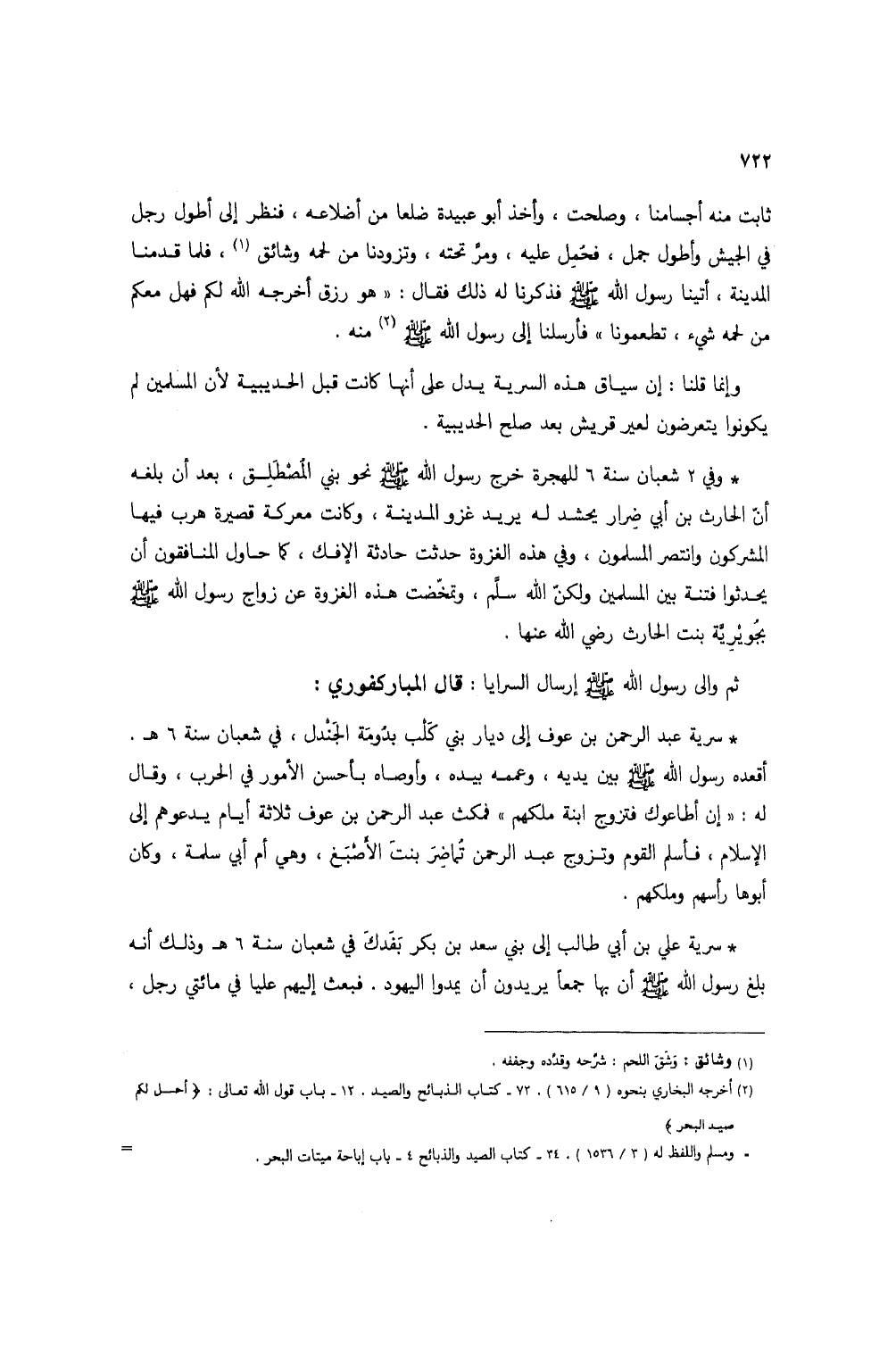 ثم والى رسول الله صلى الله عليه وسلم إرسال السرايا: قال المباركفوري: