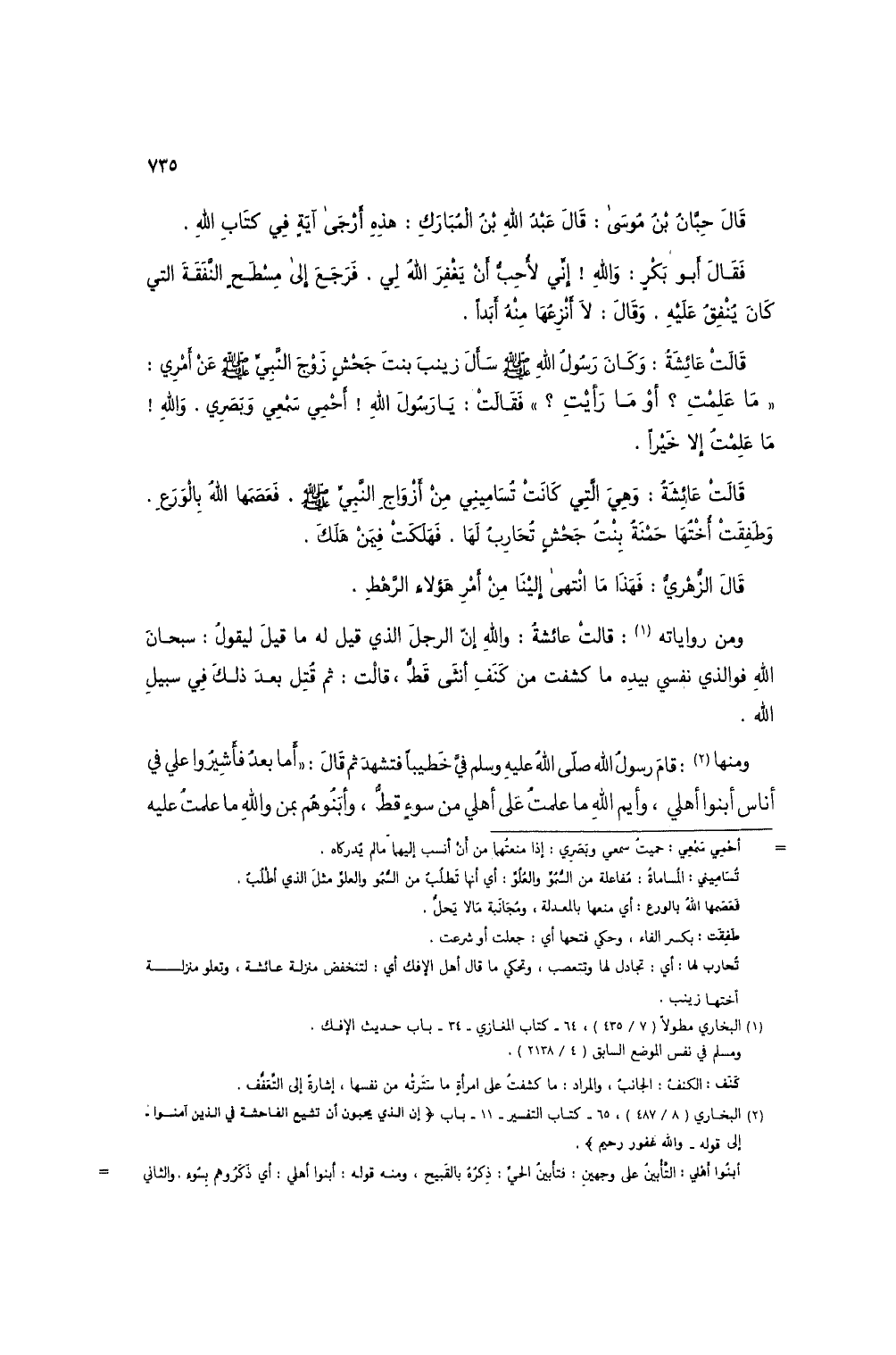 (2) البخاري (8/ 487)، 65 - كتاب التفسير - 11 - باب (إن الذين يحبون أن تشيع الفاحشة في الذين آمنوا - إلى قوله - والله غفور رحيم).