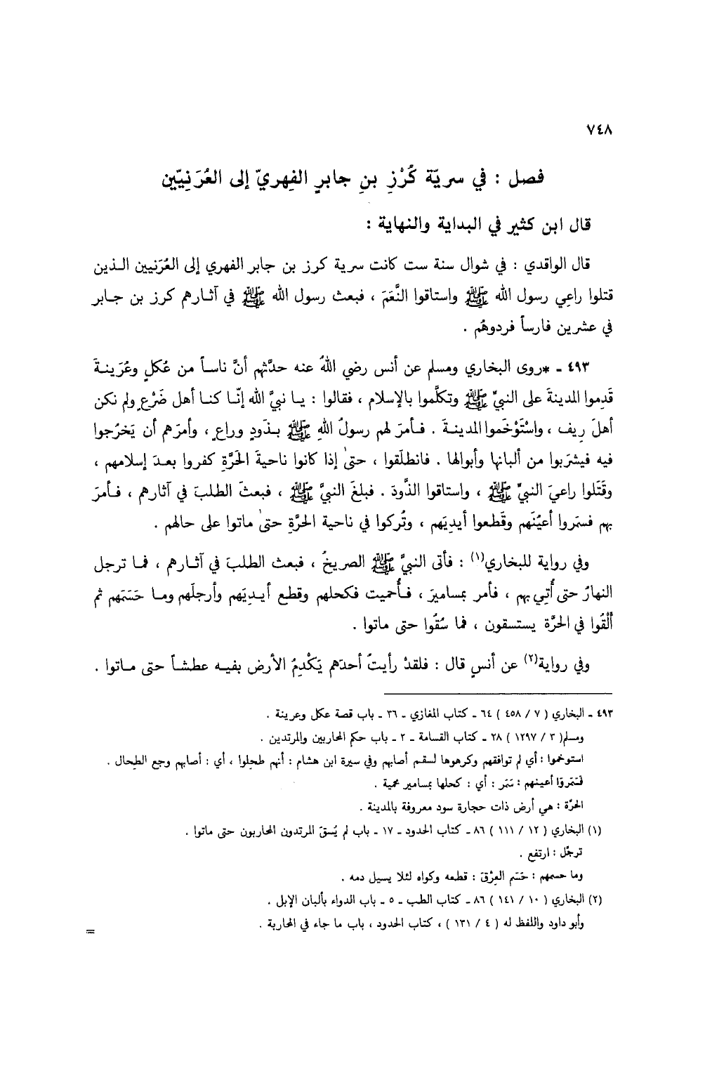 493 - البخاري (7/ 458) 64 - كتاب المغازي - 36 - باب قصة عكل وعرينة.