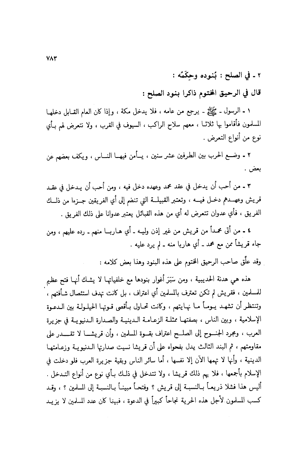 قال في الرحيق المختوم ذاكراً بنود الصلح: