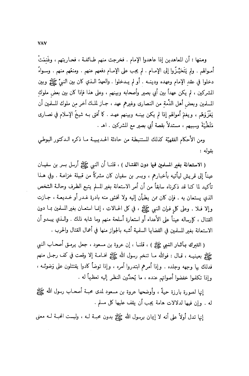 ومن الأحكام الفقهية كذلك المستنبطة من حادثة الحديبية ما ذكره الدكتور البوطي بقوله:
