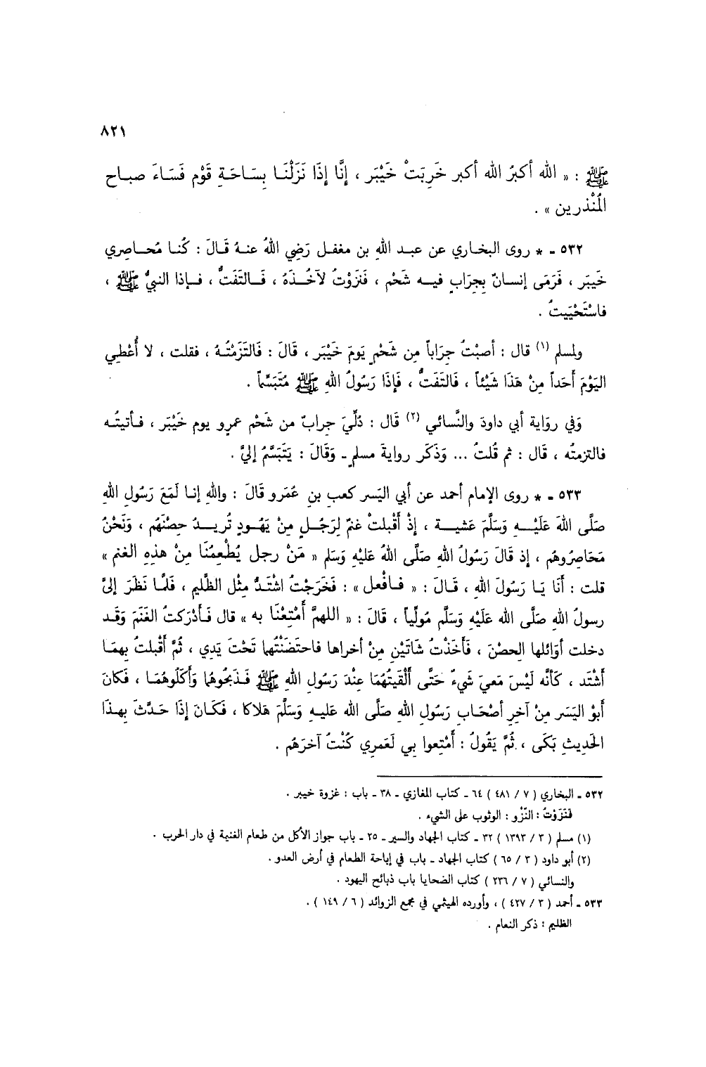 532 - البخاري (7/ 481) 64 - كتاب المغازي - 38 - باب: غزوة خيبر.