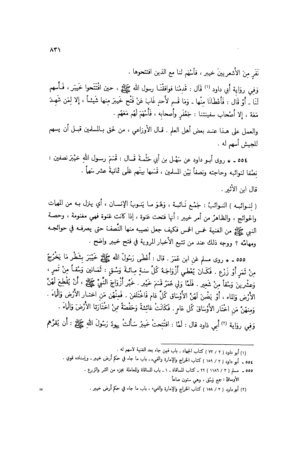 (2) أبو داود (3/ 158) كتاب الخراج والإمارة والفيء، باب ما جاء في حكم أرض خيبر.