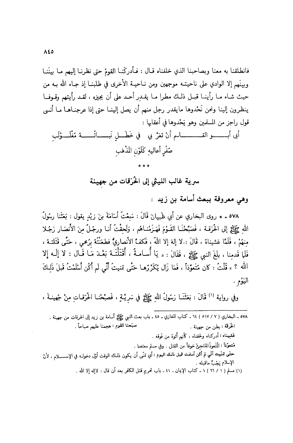 578 - البخاري (7/ 517) 64 - كتاب المغازي - 45 - باب بعث النبي صلى الله عليه وسلم أسامة بن زيد إلى الحرقات من جهينة.