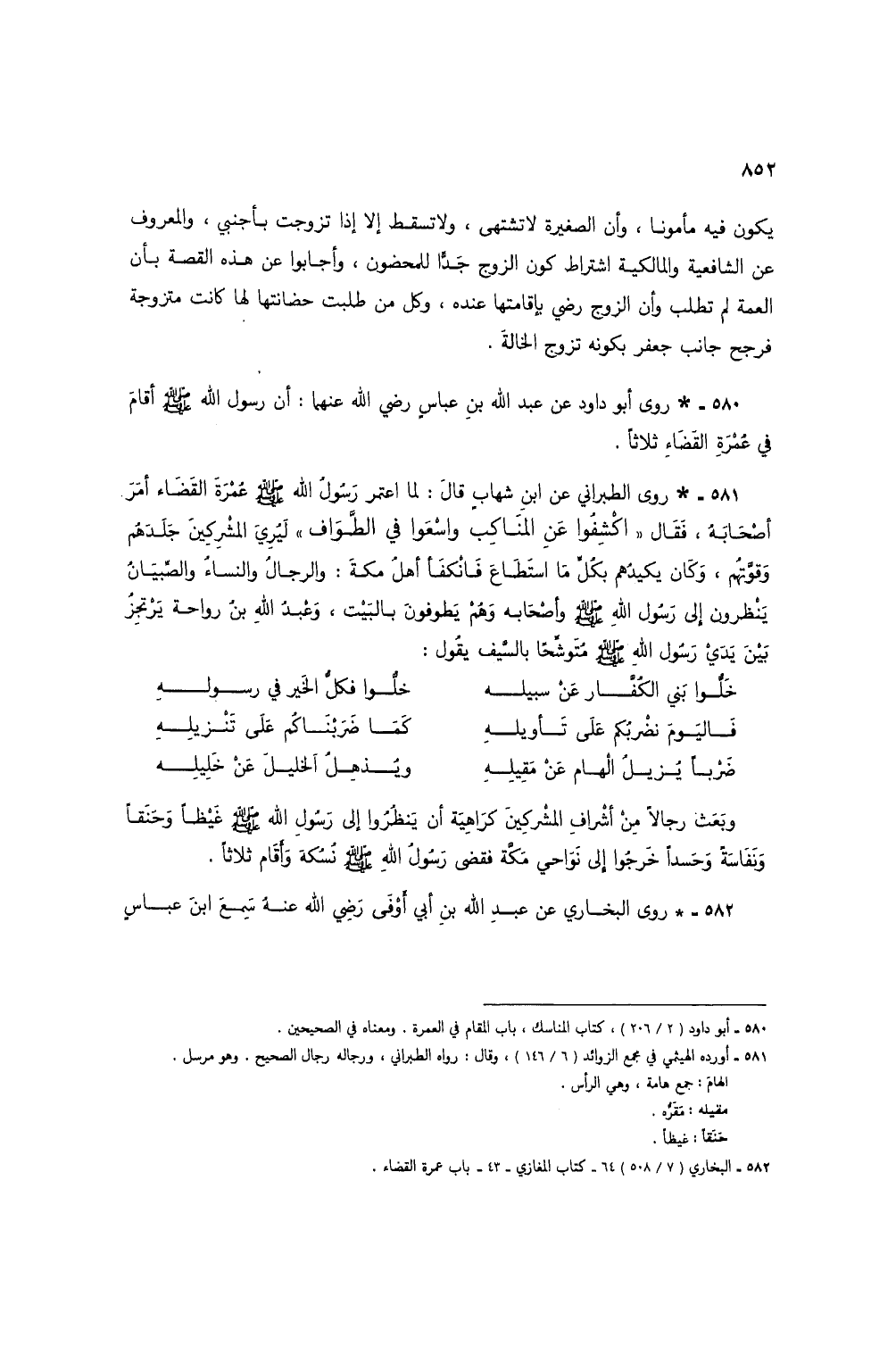 580 - * روى أبو داود عن عبد الله بن عباس رضي الله عنهما: أن رسول الله صلى الله عليه وسلم أقام في عمرة القضاء ثلاثاً.