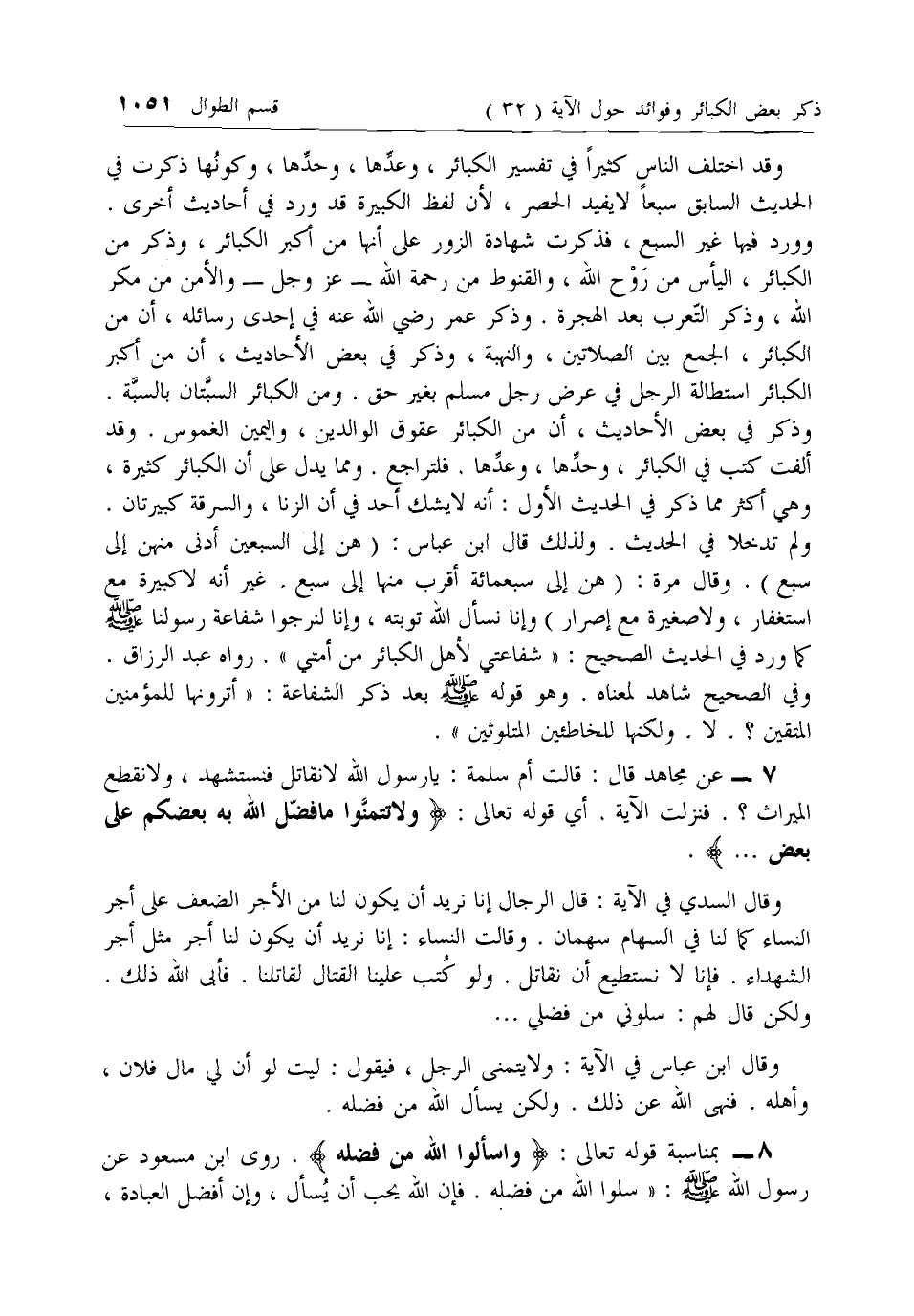 8 - بمناسبة قوله تعالى: وَسْئَلُوا اللَّهَ مِنْ فَضْلِهِ. روى ابن مسعود عن رسول الله صلى الله عليه وسلم: «سلوا الله من فضله. فإن الله يحب أن يسأل، وإن أفضل العبادة،
