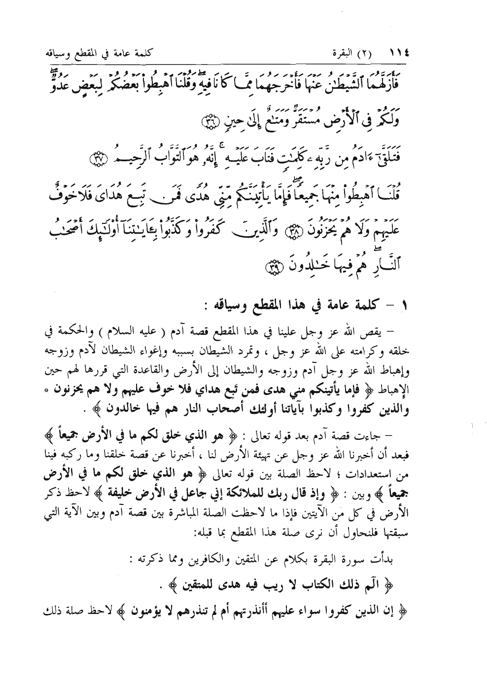 1 - كلمة عامة في هذا المقطع وسياقه: