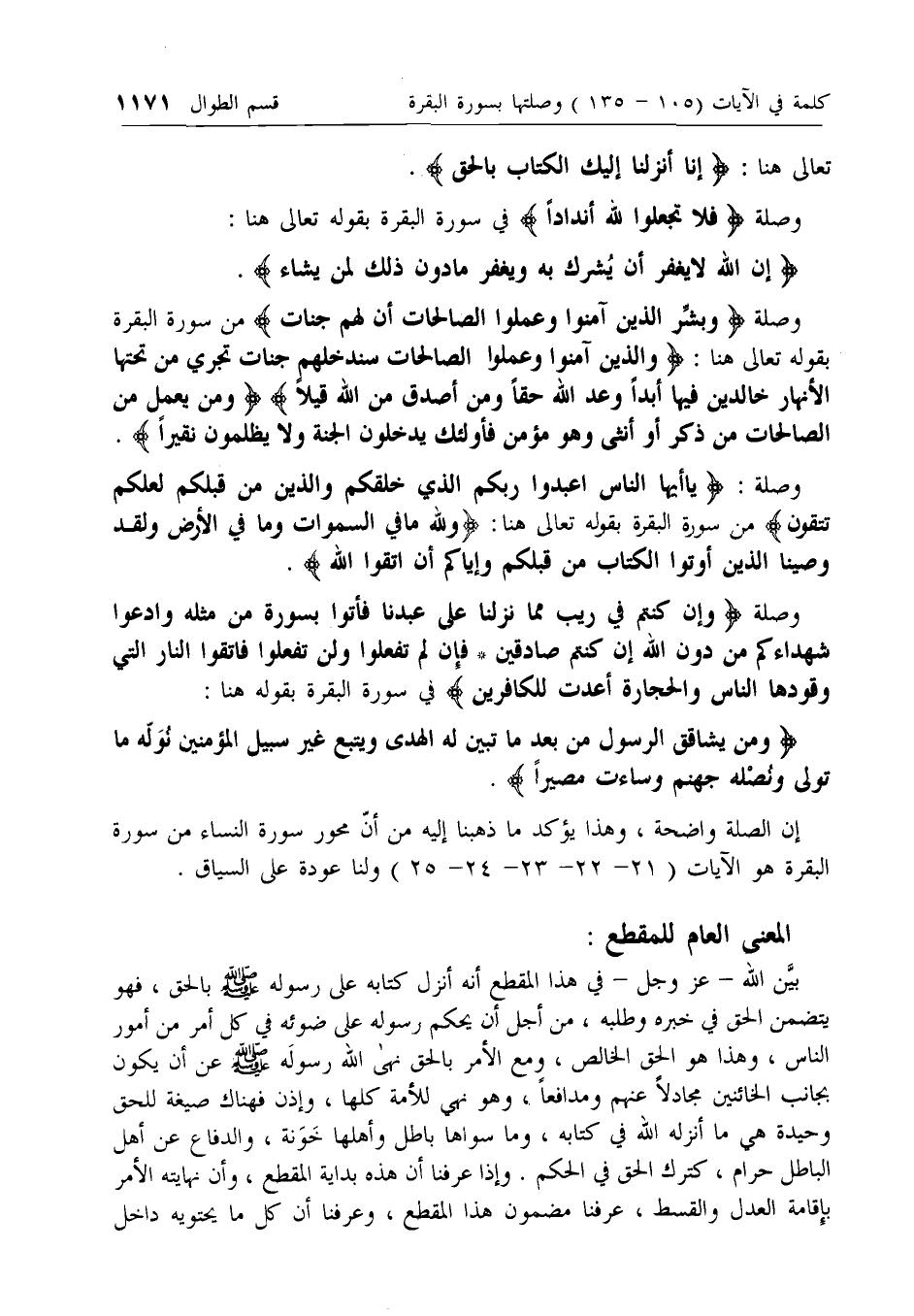 إن الصلة واضحة، وهذا يؤكد ما ذهبنا إليه من أن محور سورة النساء من سورة البقرة هو الآيات (21 - 22 - 23 - 24 - 25) ولنا عودة على السياق.