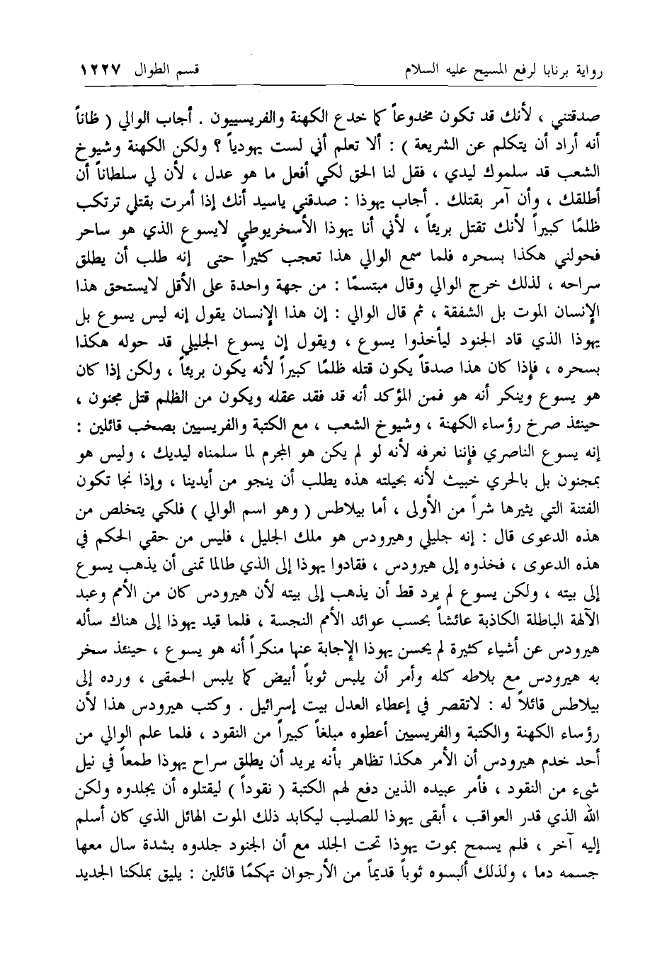 صدقتني، لأنك قد تكون مخدوعا كما خدع الكهنة والفريسيون. أجاب الوالي (ظانا أنه أراد أن يتكلم عن الشريعة): ألا تعلم أني لست يهوديا؟ ولكن الكهنة وشيوخ الشعب قد سلموك ليدي، فقل لنا الحق لكي أفعل ما هو عدل، لأن لي سلطانا أن أطلقك، وأن آمر بقتلك. أجاب يهوذا: صدقني يا سيد أنك إذا أمرت بقتلي ترتكب ظلما كبيرا لأنك تقتل بريئا، لأني أنا يهوذا الأسخريوطي لا يسوع الذي هو ساحر فحولني هكذا بسحره فلما سمع الوالي هذا تعجب كثيرا حتى إنه طلب أن يطلق سراحه، لذلك خرج الوالي وقال مبتسما: من جهة واحدة على الأقل لا يستحق هذا الإنسان الموت بل الشفقة، ثم قال الوالي: إن هذا الإنسان يقول إنه ليس يسوع بل يهوذا الذي قاد الجنود ليأخذوا يسوع، ويقول إن يسوع الجليلي قد حوله هكذا بسحره، فإذا كان هذا صدقا يكون قتله ظلما كبيرا لأنه يكون بريئا، ولكن إذا كان هو يسوع وينكر أنه هو فمن المؤكد أنه قد فقد عقله ويكون من الظلم قتل مجنون، حينئذ صرخ رؤساء الكهنة، وشيوخ الشعب، مع الكتبة والفريسيين بصخب قائلين: