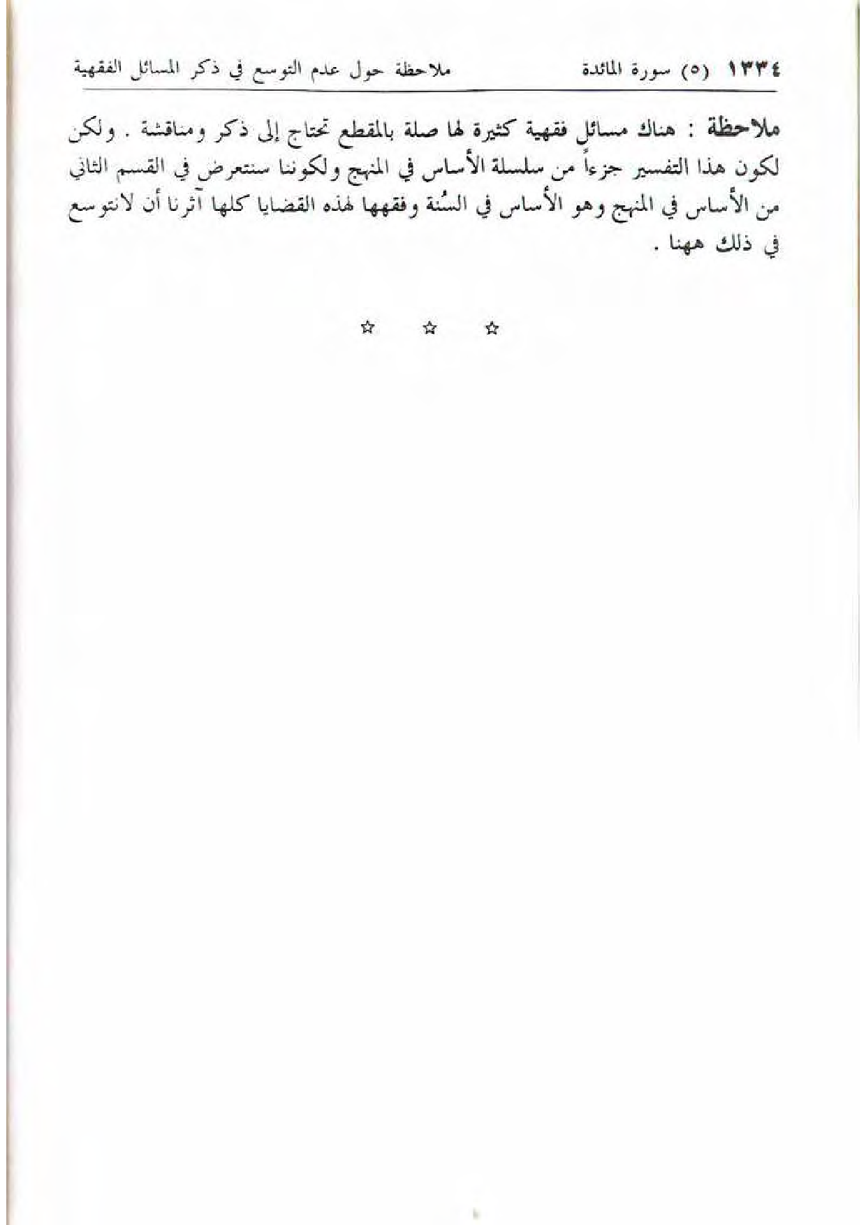 ملاحظة: هناك مسائل فقهية كثيرة لها صلة بالمقطع تحتاج إلى ذكر ومناقشة. ولكن لكون هذا التفسير جزءا من سلسلة الأساس في المنهج ولكوننا سنتعرض في القسم الثاني من الأساس في المنهج وهو الأساس في السنة وفقهها لهذه القضايا كلها آثرنا أن لا نتوسع في ذلك هاهنا.