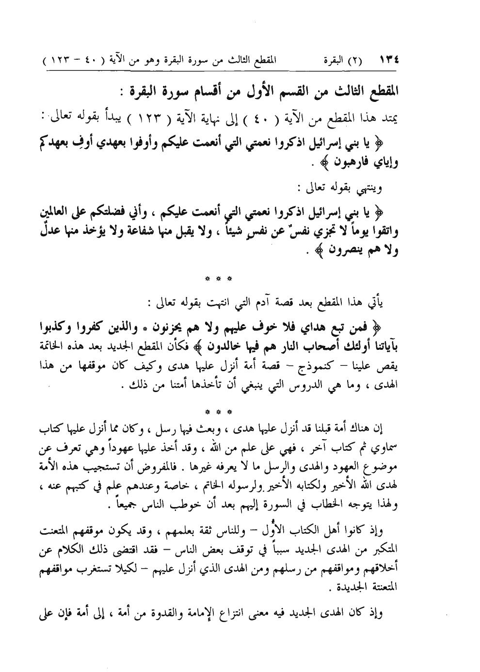 المقطع الثالث من القسم الأول من أقسام سورة البقرة: