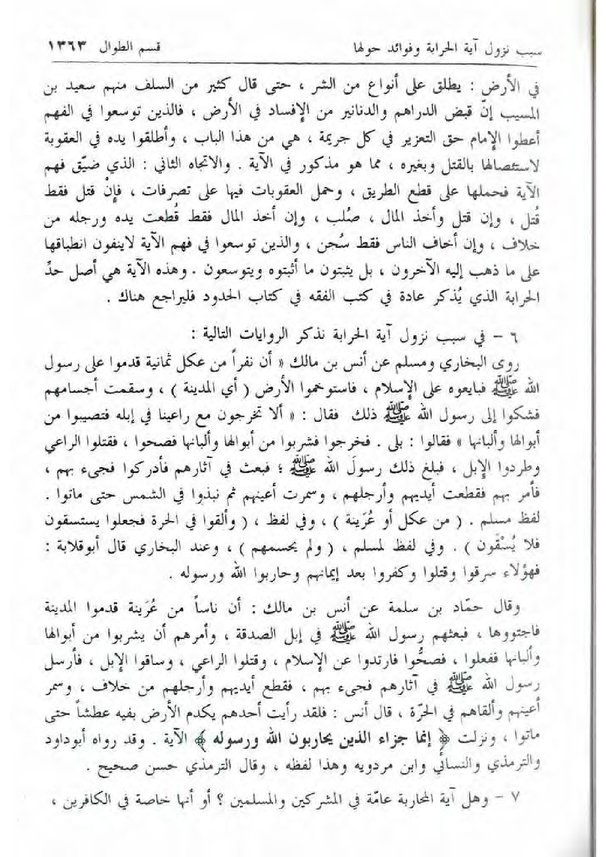 6 - في سبب نزول آية الحرابة نذكر الروايات التالية: