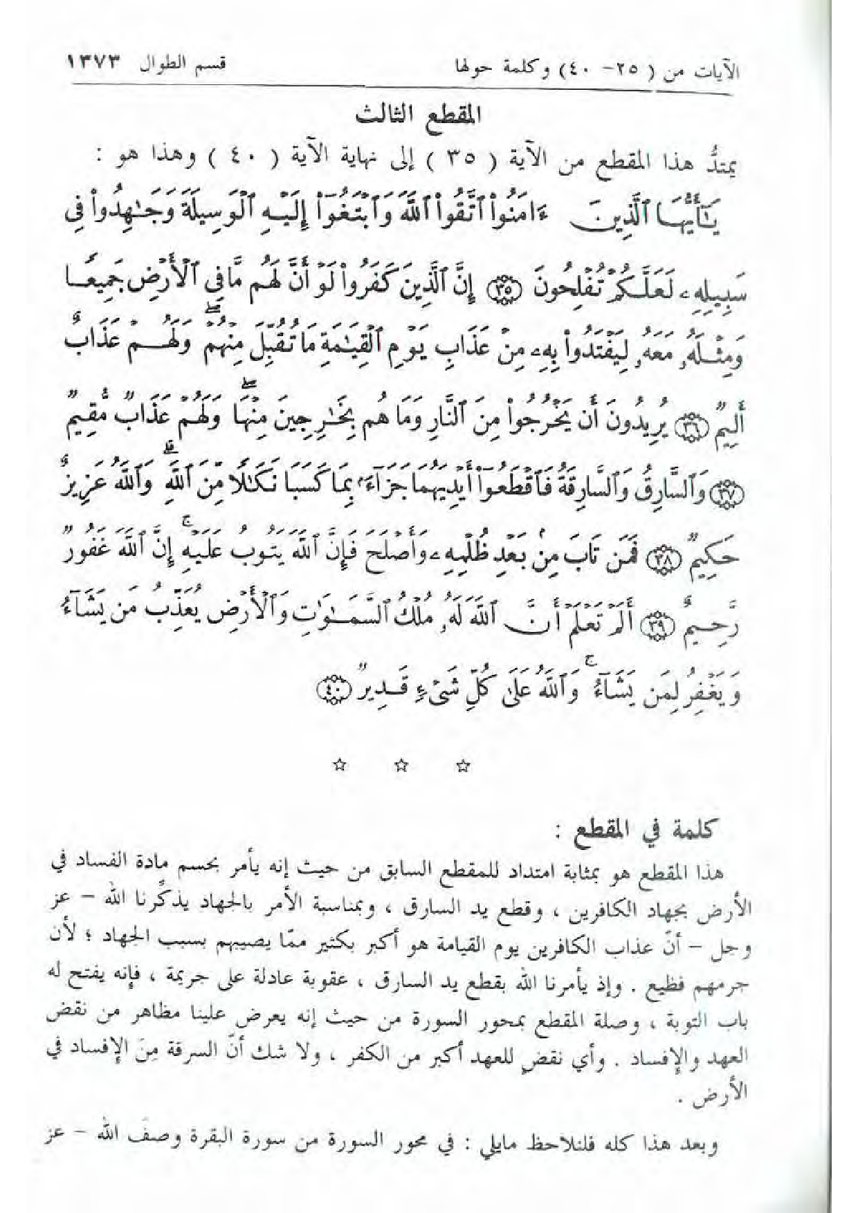 المقطع الثالث يمتدّ هذا المقطع من الآية (35) إلى نهاية الآية (40) وهذا هو:
