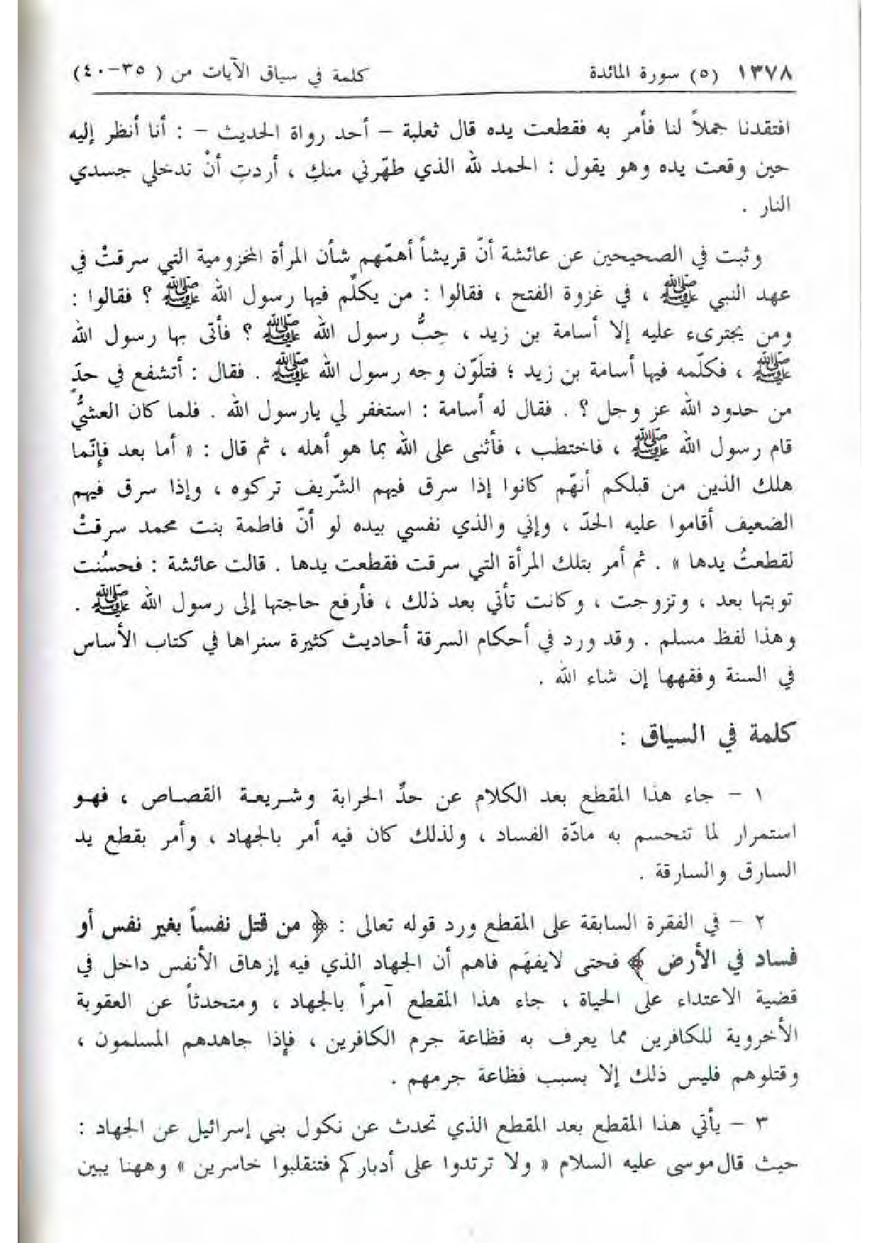 1 - جاء هذا المقطع بعد الكلام عن حدّ الحرابة وشريعة القصاص، فهو استمرار لما تنحسم به مادّة الفساد، ولذلك كان فيه أمر بالجهاد، وأمر بقطع يد السارق والسارقة.