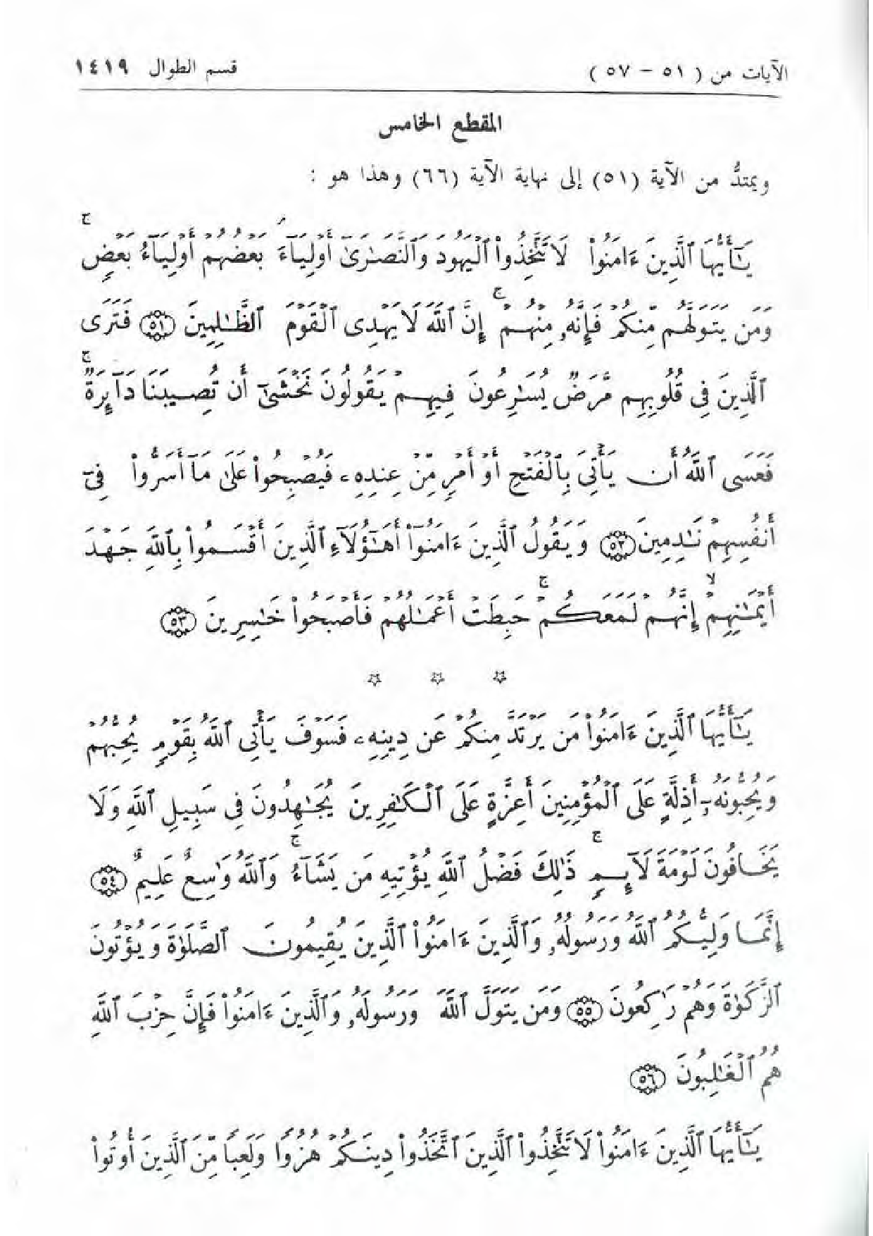 المقطع الخامس ويمتدّ من الآية (51) إلى نهاية الآية (66) وهذا هو: