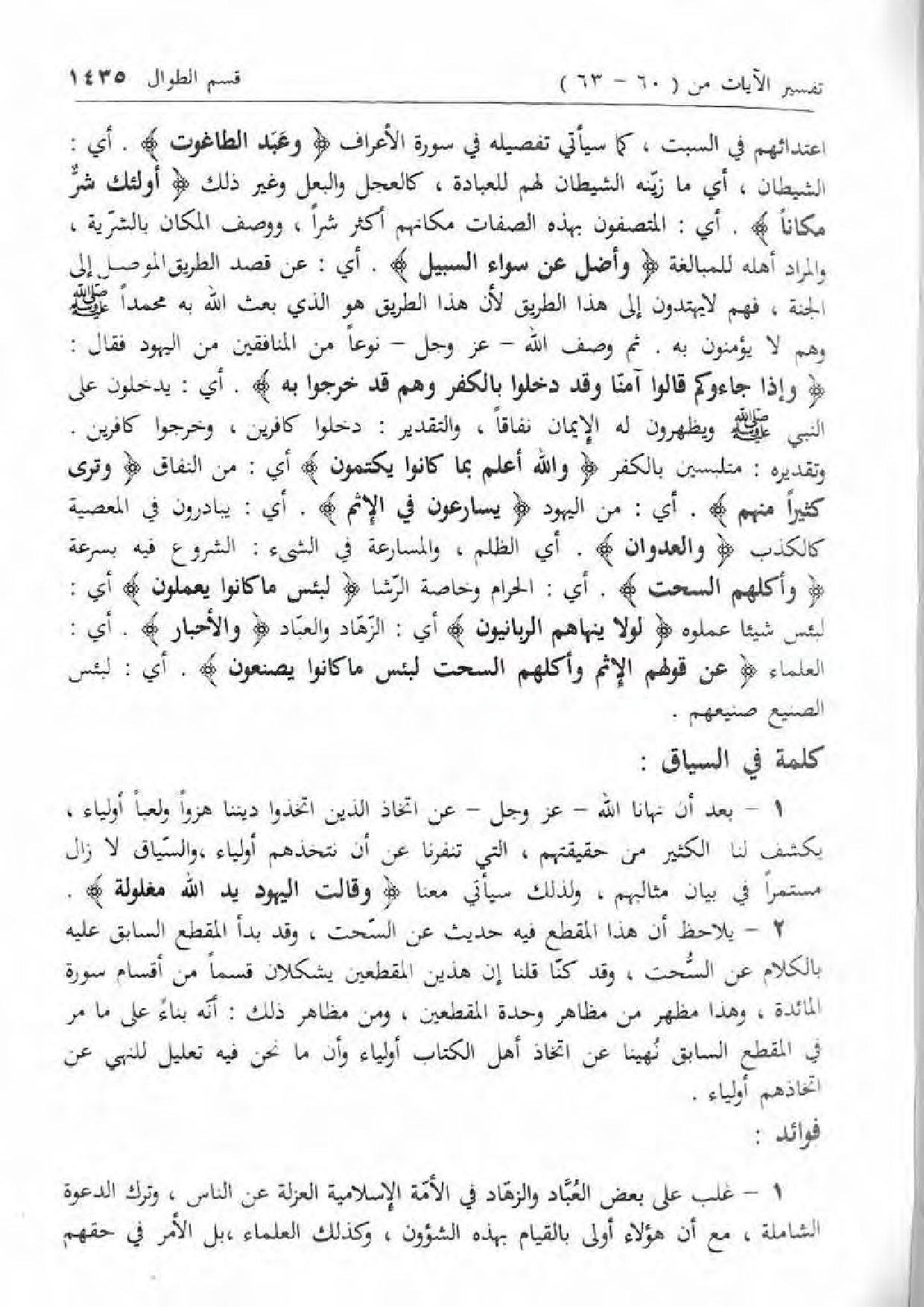 1 - بعد أن نهانا الله- عزّ وجل- عن اتخاذ الذين اتخذوا ديننا هزوا ولعبا أولياء، يكشف لنا الكثير من حقيقتهم، التي تنفرنا عن أن نتخذهم أولياء، والسّياق لا زال مستمرا في بيان مثالبهم، ولذلك سيأتي معنا وَقالَتِ الْيَهُودُ يَدُ اللَّهِ مَغْلُولَةٌ.