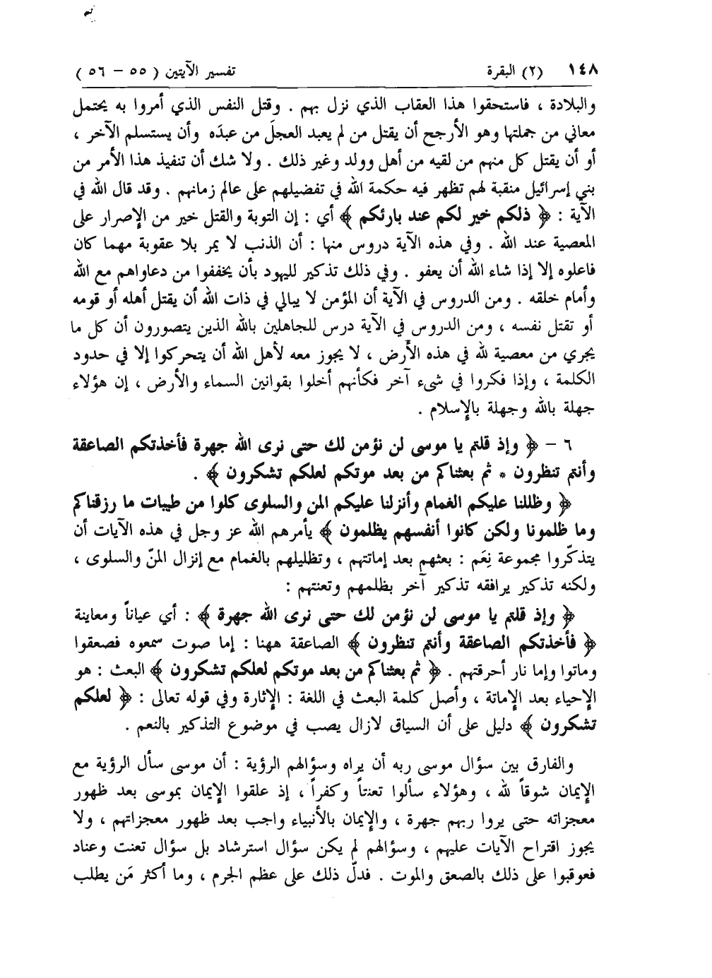 6 - وَإِذْ قُلْتُمْ يا مُوسى لَنْ نُؤْمِنَ لَكَ حَتَّى نَرَى اللَّهَ جَهْرَةً فَأَخَذَتْكُمُ الصَّاعِقَةُ وَأَنْتُمْ تَنْظُرُونَ* ثُمَّ بَعَثْناكُمْ مِنْ بَعْدِ مَوْتِكُمْ لَعَلَّكُمْ تَشْكُرُونَ.