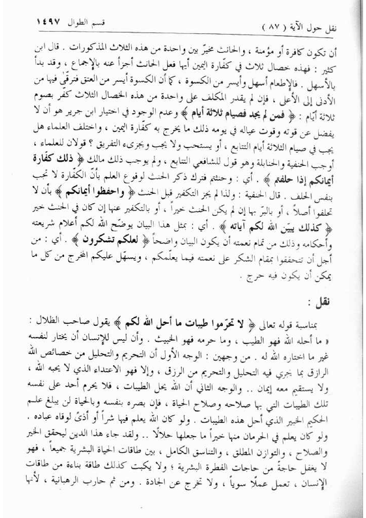 نقل: [عن صاحب الظلال حول قوله تعالى لا تُحَرِّمُوا طَيِّباتِ ما أَحَلَّ اللَّهُ .. ]