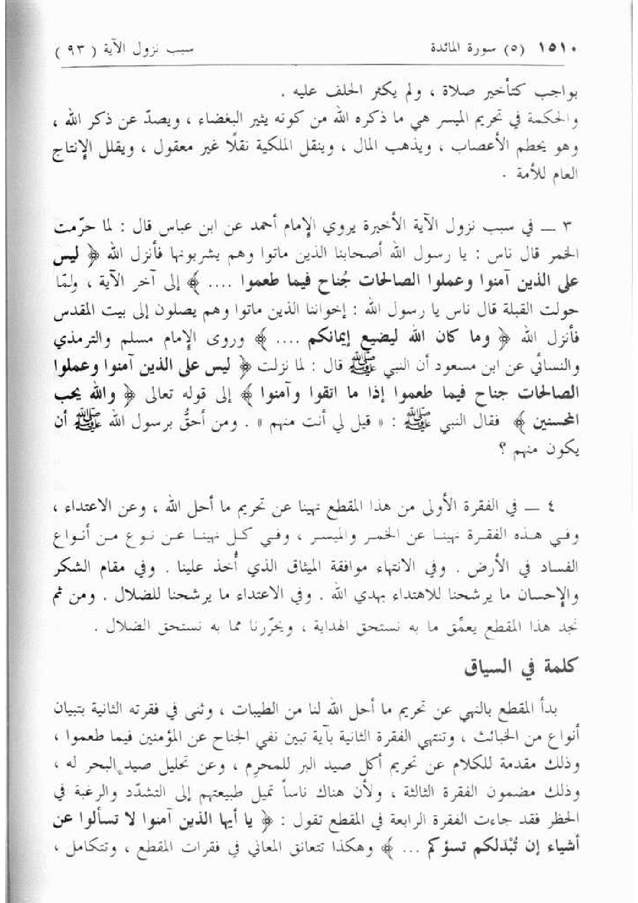 3 - [سبب نزول لَيْسَ عَلَى الَّذِينَ آمَنُوا وَعَمِلُوا الصَّالِحاتِ جُناحٌ .. الآية (93)]