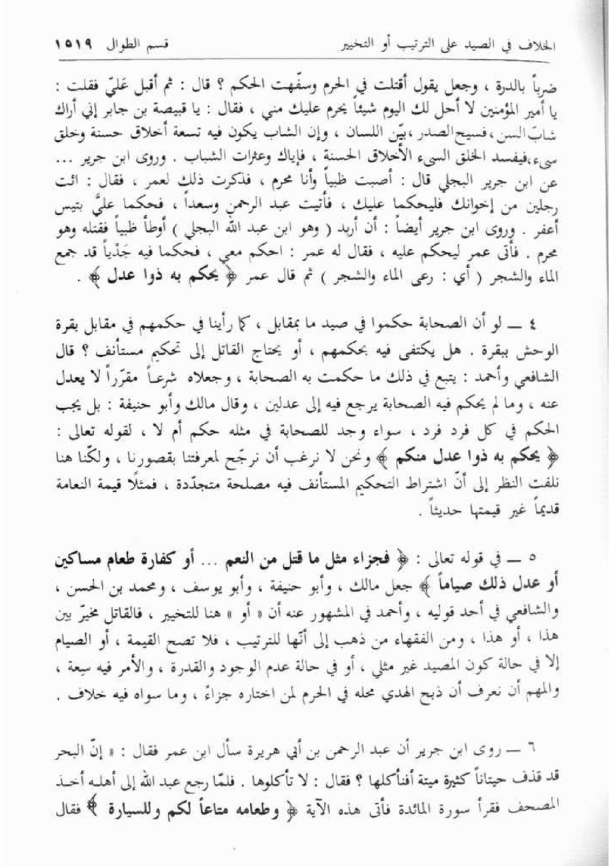 يَحْكُمُ بِهِ ذَوا عَدْلٍ مِنْكُمْ ونحن لا نرغب أن نرجّح لمعرفتنا بقصورنا، ولكنّا هنا نلفت النظر إلى أنّ اشتراط التحكيم المستأنف فيه مصلحة متجدّدة، فمثلا قيمة النعامة قديما غير قيمتها حديثا.