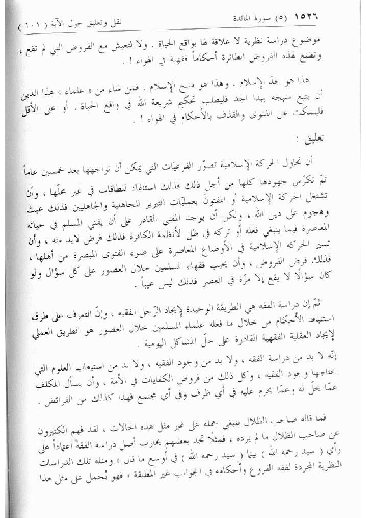 تعليق: [المؤلف على كلام صاحب الظلال وبيان أهمية دراسة الفقه]