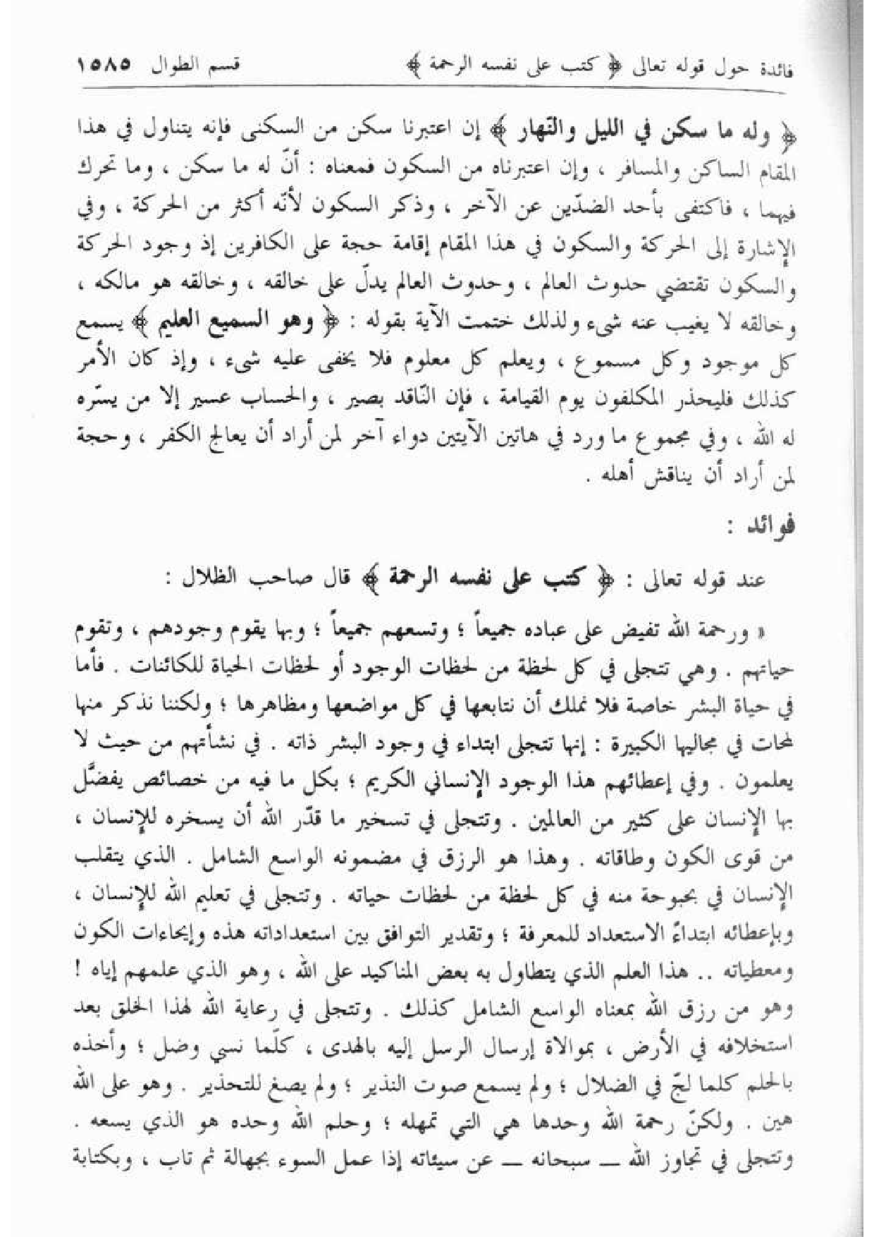 فوائد: [نقل عن صاحب الظلال حول آية كَتَبَ عَلى نَفْسِهِ الرَّحْمَةَ]