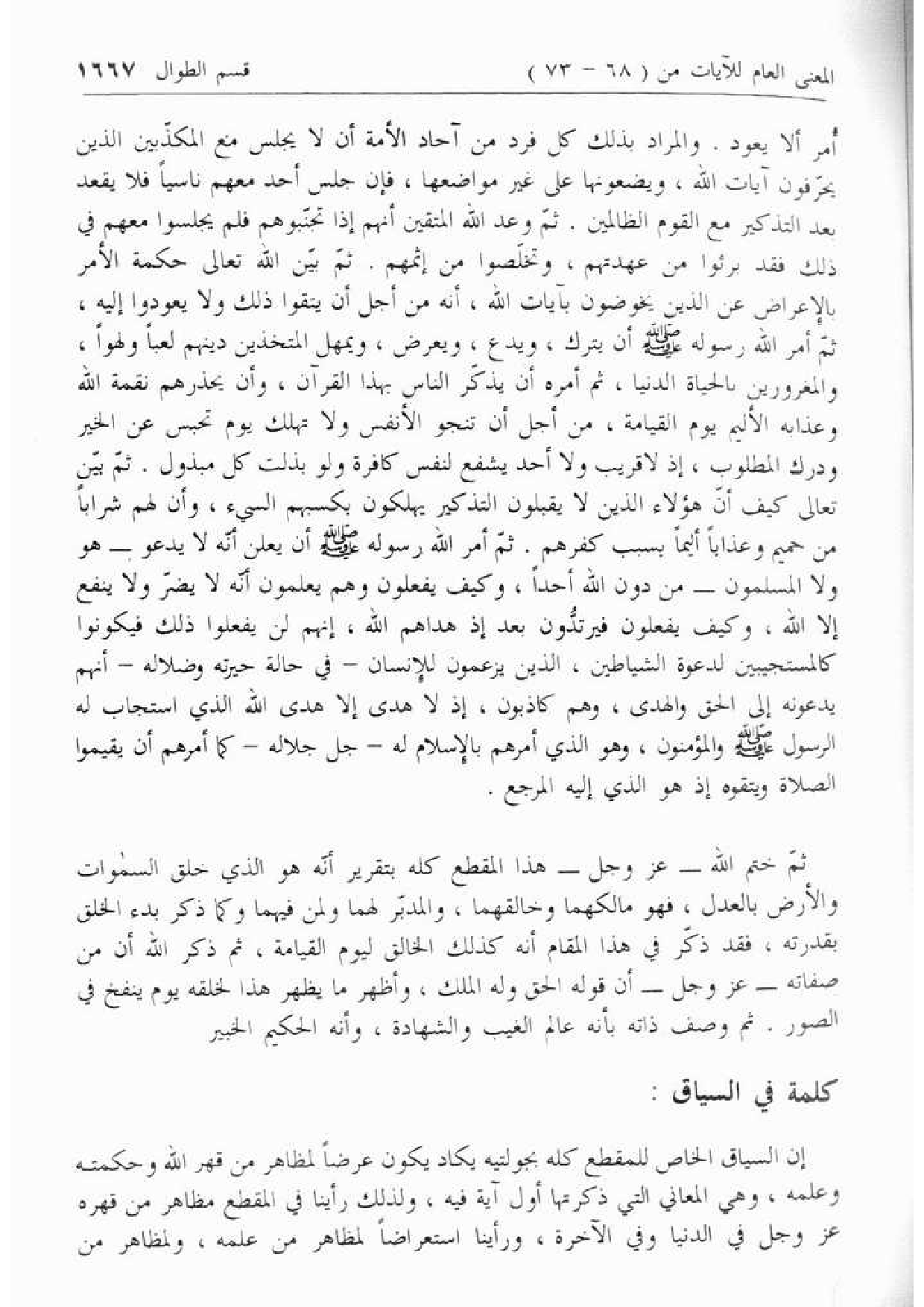 إن السياق الخاص للمقطع كله بجولتيه يكاد يكون عرضا لمظاهر من قهر الله وحكمته وعلمه، وهي المعاني التي ذكرتها أول آية فيه، ولذلك رأينا في المقطع مظاهر من قهره عزّ وجل في الدنيا وفي الآخرة، ورأينا استعراضا لمظاهر من علمه، ولمظاهر من