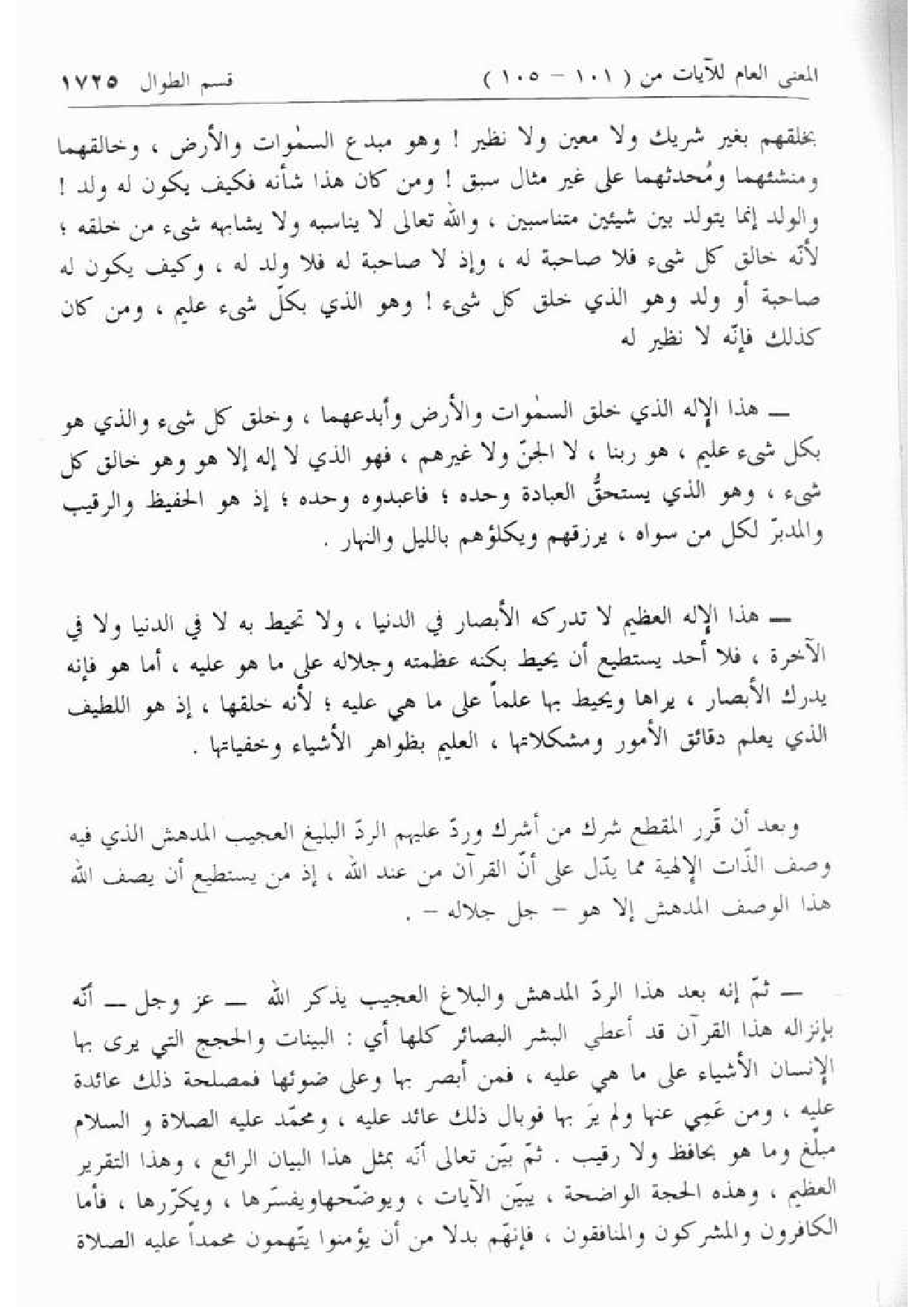 وبعد أن قرّر المقطع شرك من أشرك وردّ عليهم الردّ البليغ العجيب المدهش الذي فيه وصف الذّات الإلهية مما يدّل على أنّ القرآن من عند الله، إذ من يستطيع أن يصف الله هذا الوصف المدهش إلا هو- جل جلاله-.