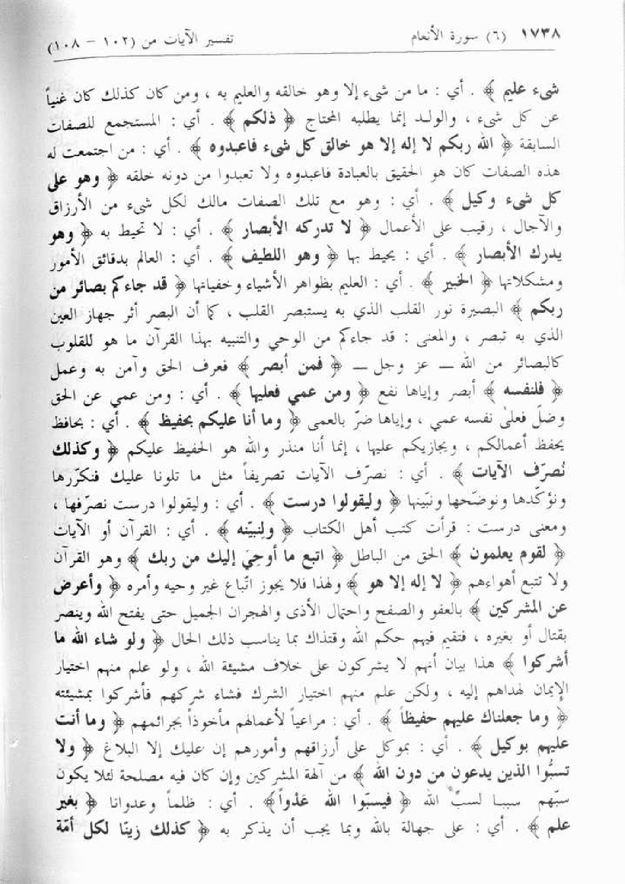 لا تُدْرِكُهُ الْأَبْصارُ. أي: لا تحيط به وَهُوَ يُدْرِكُ الْأَبْصارَ. أي: يحيط بها وَهُوَ اللَّطِيفُ. أي: العالم بدقائق الأمور ومشكلاتها الْخَبِيرُ. أي: العليم بظواهر الأشياء وخفياتها