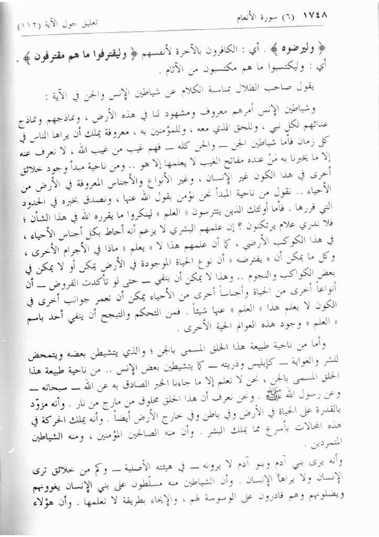 يقول صاحب الظلال بمناسبة الكلام عن شياطين الإنس والجن في الآية: