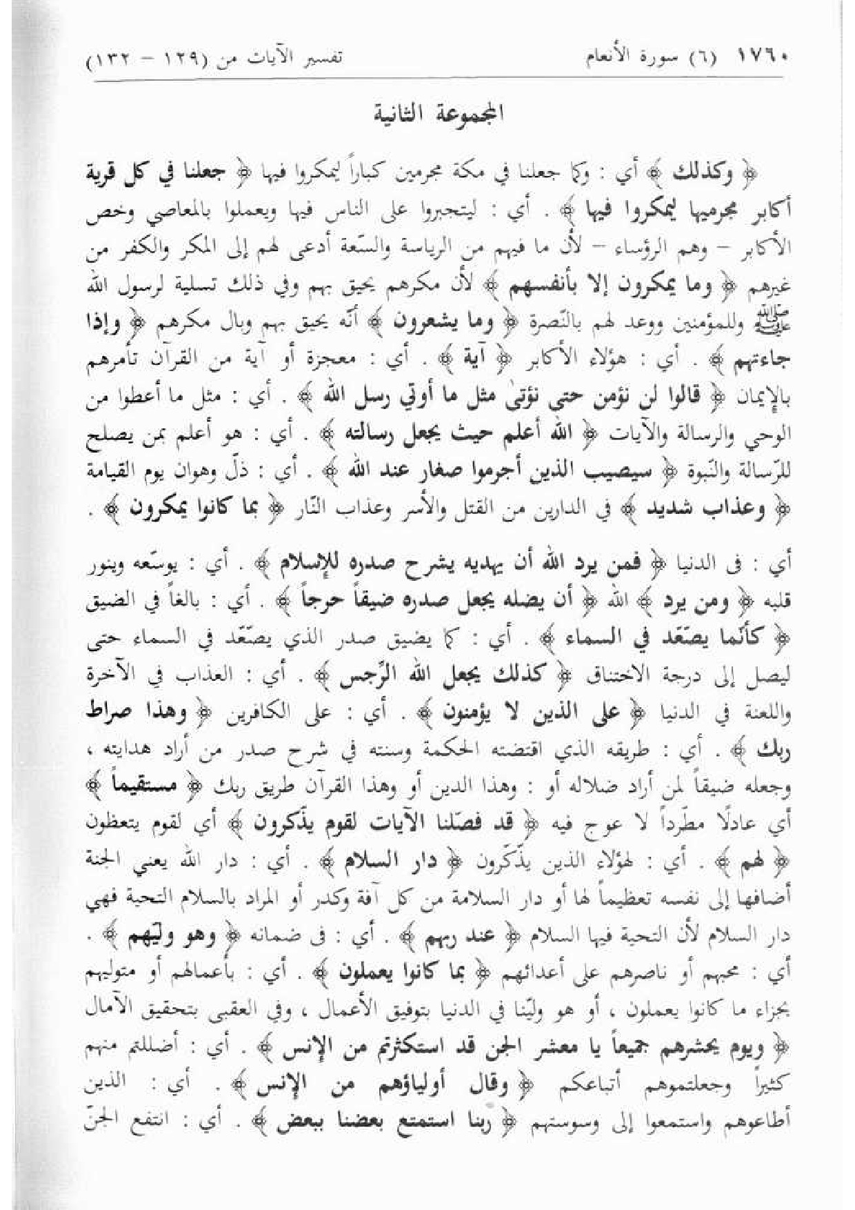 فَمَنْ يُرِدِ اللَّهُ أَنْ يَهْدِيَهُ يَشْرَحْ صَدْرَهُ لِلْإِسْلامِ. أي: يوسّعه وينور قلبه وَمَنْ يُرِدْ الله أَنْ يُضِلَّهُ يَجْعَلْ صَدْرَهُ ضَيِّقاً حَرَجاً. أي: بالغا في الضيق كَأَنَّما يَصَّعَّدُ فِي السَّماءِ. أي: كما يضيق صدر الذي يصّعّد في السماء حتى ليصل إلى درجة الاختناق كَذلِكَ يَجْعَلُ اللَّهُ الرِّجْسَ. أي: العذاب في الآخرة واللعنة في الدنيا عَلَى الَّذِينَ لا يُؤْمِنُونَ. أي: على الكافرين