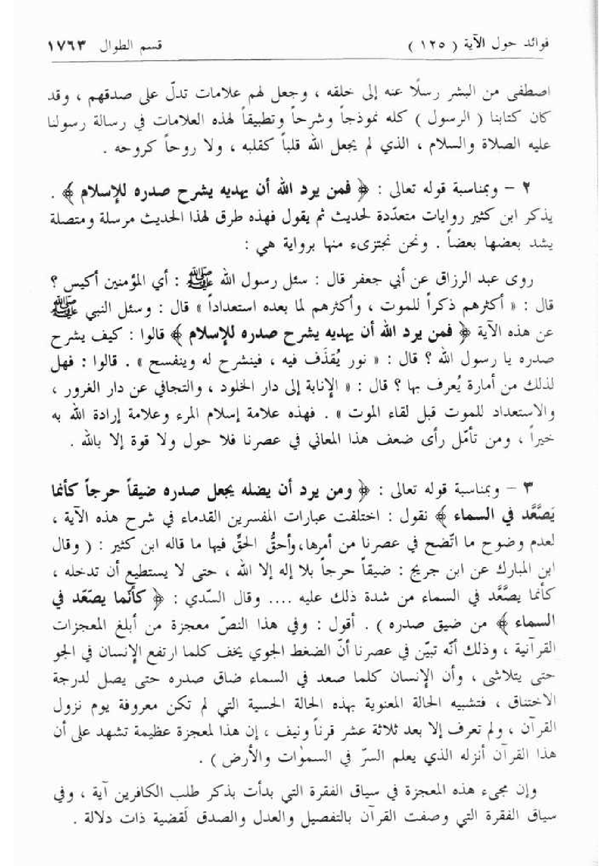 2 - وبمناسبة قوله تعالى: فَمَنْ يُرِدِ اللَّهُ أَنْ يَهْدِيَهُ يَشْرَحْ صَدْرَهُ لِلْإِسْلامِ.
