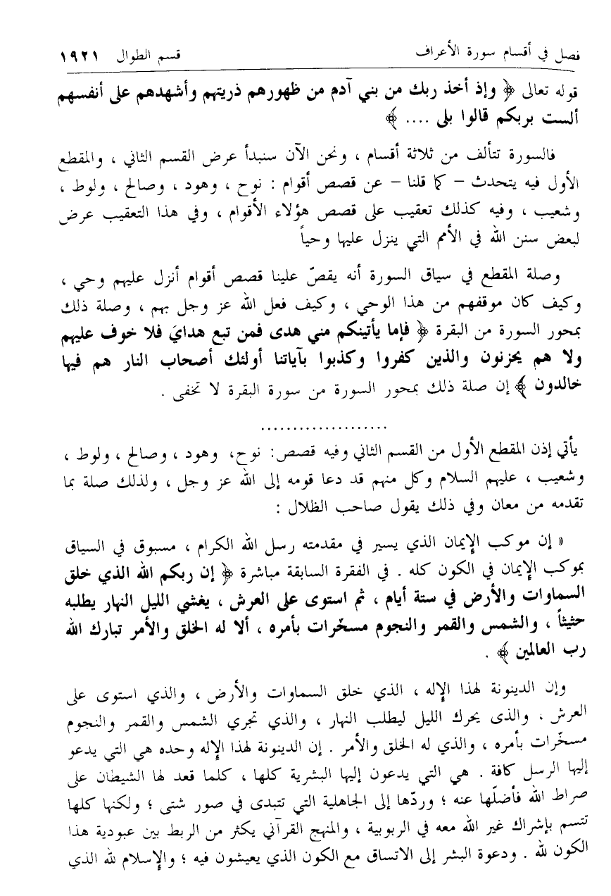 قوله تعالى وَإِذْ أَخَذَ رَبُّكَ مِنْ بَنِي آدَمَ مِنْ ظُهُورِهِمْ ذُرِّيَّتَهُمْ وَأَشْهَدَهُمْ عَلى أَنْفُسِهِمْ أَلَسْتُ بِرَبِّكُمْ قالُوا بَلى ....