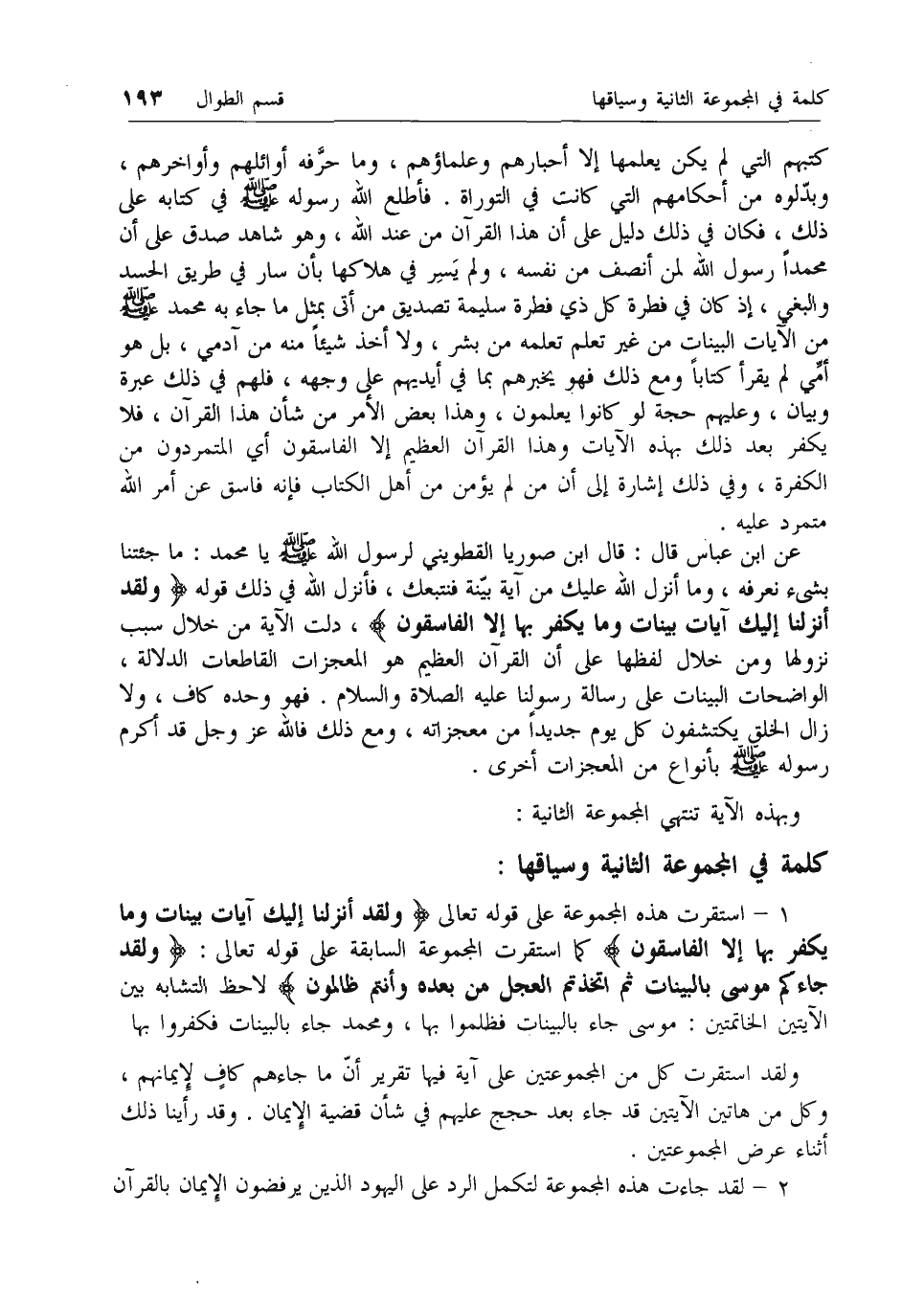 2 - لقد جاءت هذه المجموعة لتكمل الرد على اليهود الذين يرفضون الإيمان بالقرآن