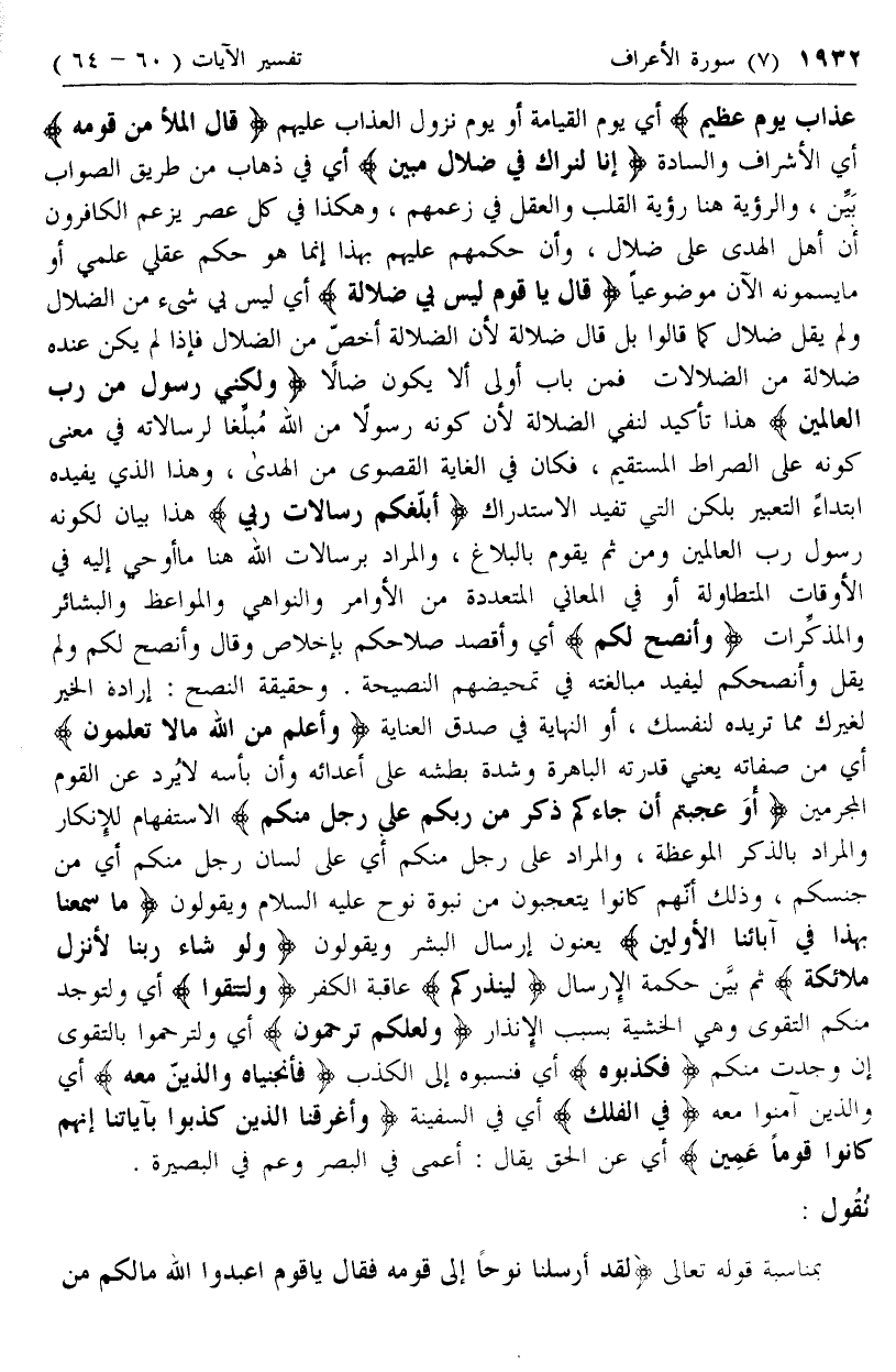 بمناسبة قوله تعالى لَقَدْ أَرْسَلْنا نُوحاً إِلى قَوْمِهِ فَقالَ يا قَوْمِ اعْبُدُوا اللَّهَ ما لَكُمْ مِنْ