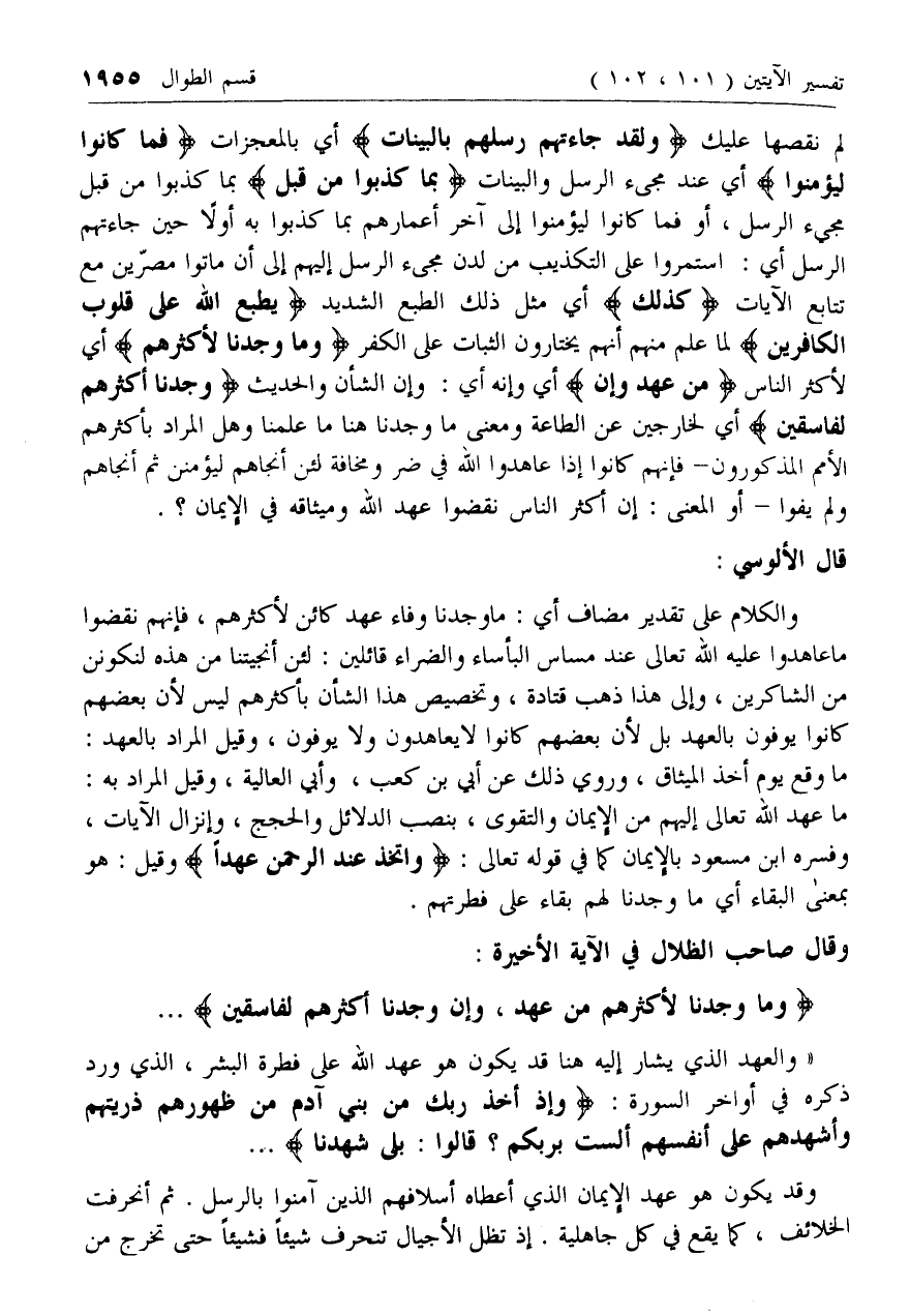 وَما وَجَدْنا لِأَكْثَرِهِمْ مِنْ عَهْدٍ، وَإِنْ وَجَدْنا أَكْثَرَهُمْ لَفاسِقِينَ ...