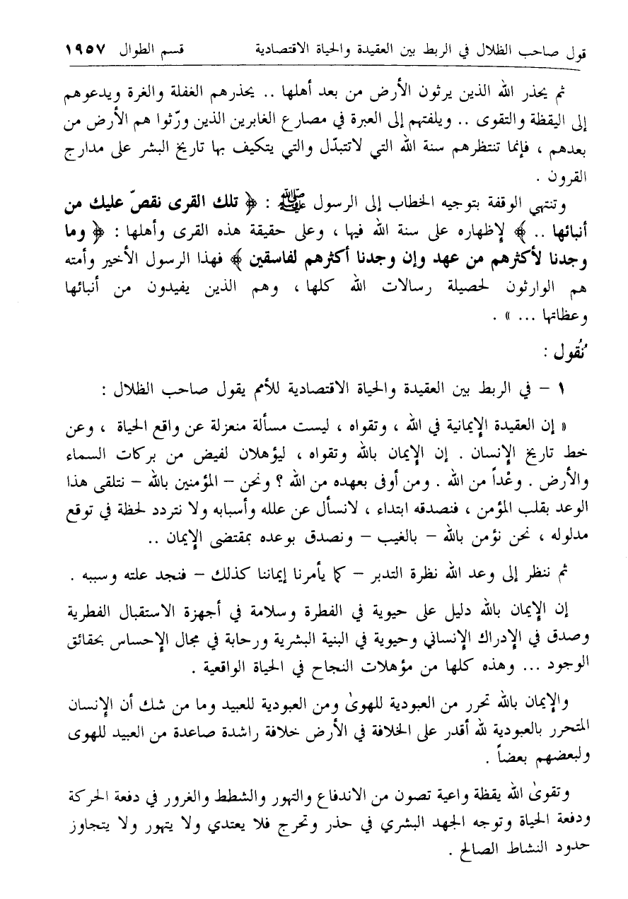 1 - في الربط بين العقيدة والحياة الاقتصادية للأمم يقول صاحب الظلال: