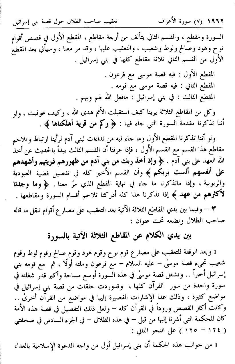 وكانت أكثر القصص ورودا في القرآن كله- ولعل ذلك التفصيل في قصة هذه الأمة كان للحكمة التي أشرنا إليها من قبل- في هذه الظلال- في الجزء السادس في صحفتي (124 - 125) على النحو التالي: