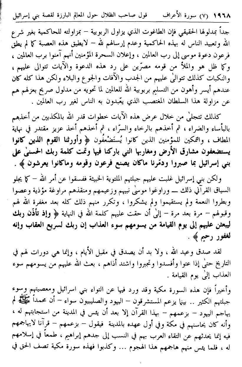 وأخيرا فإن هذه السورة مكية وقد ورد فيها عن التواء بني اسرائيل ومعصيتهم وسوء جبلتهم الكثير .. بينما يزعم المستشرقون- اليهود والصليبيون سواء- أن محمدا صلى الله عليه وسلم لم يهاجم اليهود- بزعمهم- بهذا القرآن إلا بعد أن يئس في المدينة من استجابتهم له، وأنه كان يحاسنهم في مكة وفي أول عهده بالمدينة فيقول- بزعمهم- قرآنا لا يهاجمهم فيه إنما يحدثهم عن التقاء العرب بهم في النسب إلى جدهم إبراهيم، طمعا في إسلامهم له، فلما يئس منهم هاجمهم هذا الهجوم ... وكذبوا فهذه سورة مكية تصف الحق في