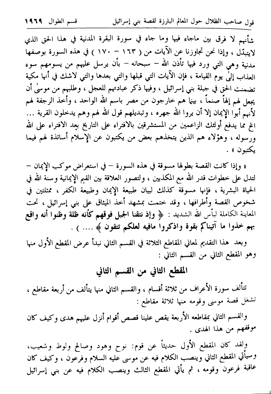 وبعد هذا التقديم لمعاني المقاطع الثلاثة في القسم الثاني نبدأ عرض المقطع الأول منها وهو المقطع الثاني من القسم الثاني: