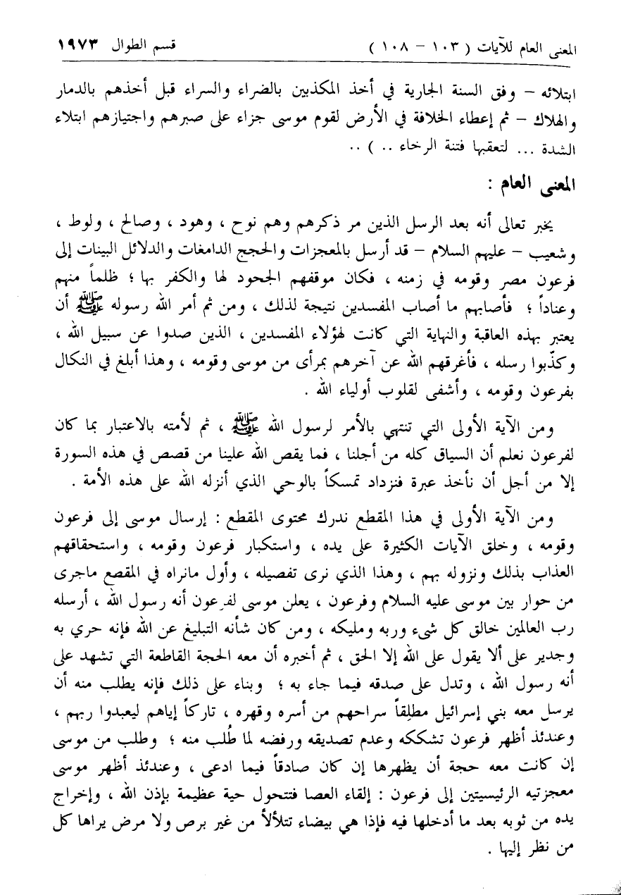 يخبر تعالى أنه بعد الرسل الذين مر ذكرهم وهم نوح، وهود، وصالح، ولوط، وشعيب- عليهم السلام- قد أرسل بالمعجزات والحجج الدامغات والدلائل البينات إلى فرعون مصر وقومه في زمنه، فكان موقفهم الجحود لها والكفر بها؛ ظلما منهم وعنادا؛ فأصابهم ما أصاب المفسدين نتيجة لذلك، ومن ثم أمر الله رسوله صلى الله عليه وسلم أن يعتبر بهذه العاقبة والنهاية التي كانت لهؤلاء المفسدين، الذين صدوا عن سبيل الله، وكذبوا رسله، فأغرقهم الله عن آخرهم بمرأى من موسى وقومه، وهذا أبلغ في النكال بفرعون وقومه، وأشفى لقلوب أولياء الله.