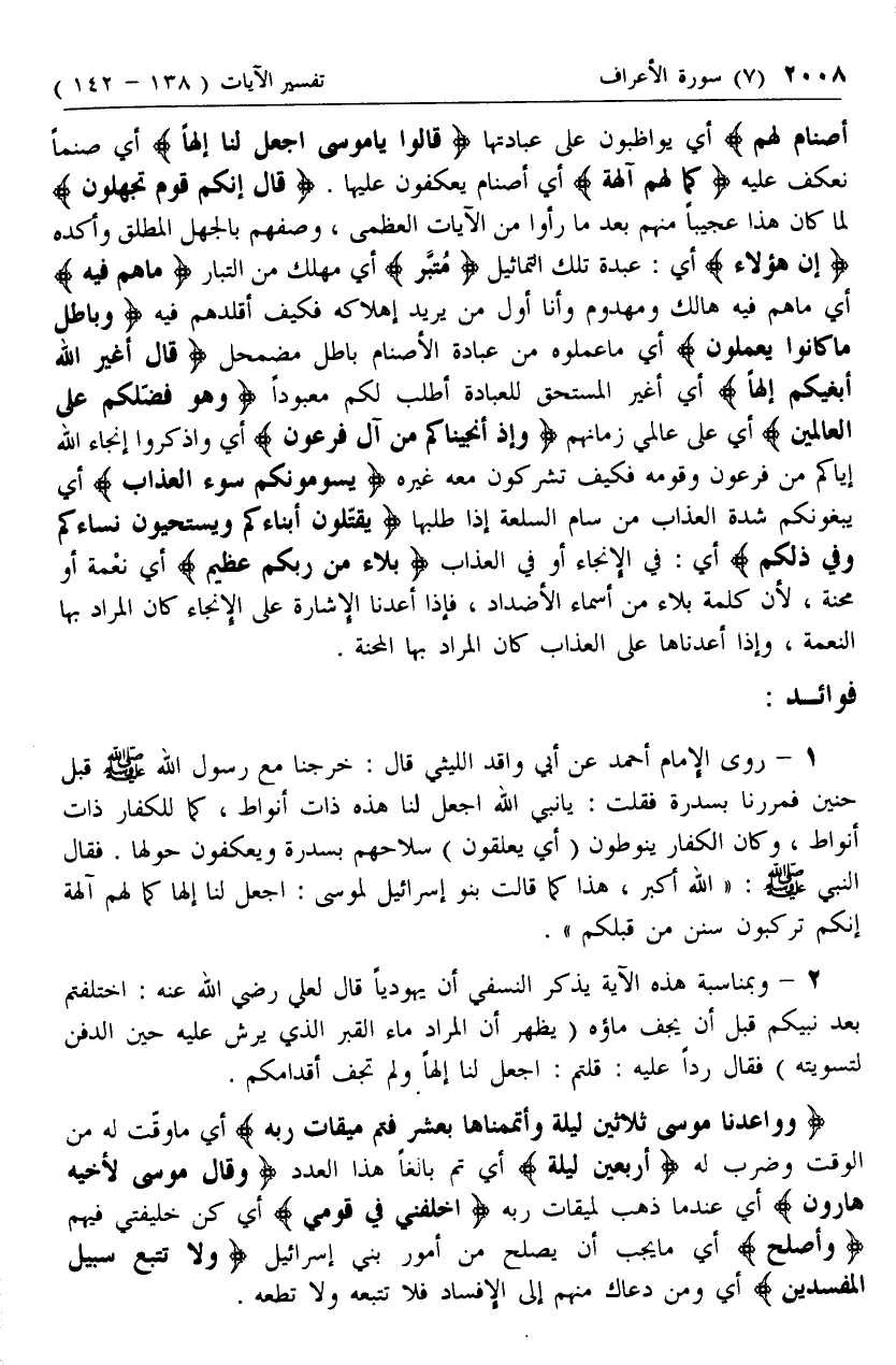 1 - روى الإمام أحمد عن أبي واقد الليثي قال: خرجنا مع رسول الله صلى الله عليه وسلم قبل حنين فمررنا بسدرة فقلت: يا نبي الله اجعل لنا هذه ذات أنواط، كما للكفار ذات أنواط، وكان الكفار ينوطون (أي يعلقون) سلاحهم بسدرة ويعكفون حولها. فقال النبي صلى الله عليه وسلم: «الله أكبر، هذا كما قالت بنو إسرائيل لموسى: اجعل لنا إلها كما لهم آلهة إنكم تركبون سنن من قبلكم».