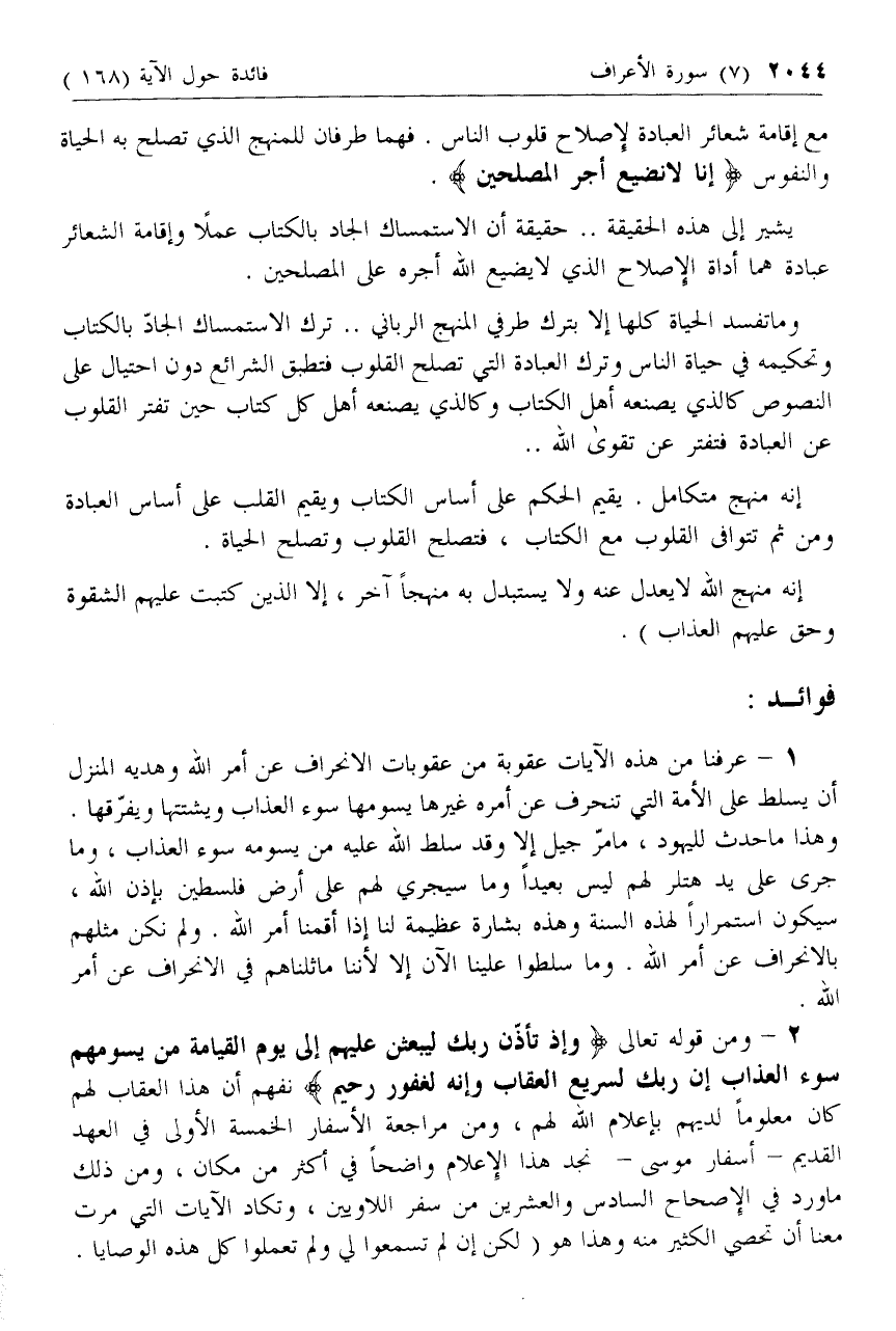 مع إقامة شعائر العبادة لإصلاح قلوب الناس. فهما طرفان للمنهج الذي تصلح به الحياة والنفوس إِنَّا لا نُضِيعُ أَجْرَ الْمُصْلِحِينَ.