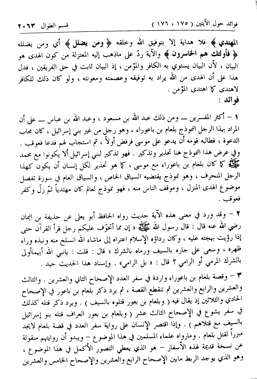 1 - أكثر المفسرين- ومن ذلك عبد الله بن مسعود، وعبد الله بن عباس- على أن المراد بهذا الرجل النموذج بلعام بن باعوراء، وهو رجل من غير بني إسرائيل، كان مجاب الدعوة، فطالبه قومه أن يدعو على موسى فرفض أولا، ثم استجاب لهم فدعا فعوقب.