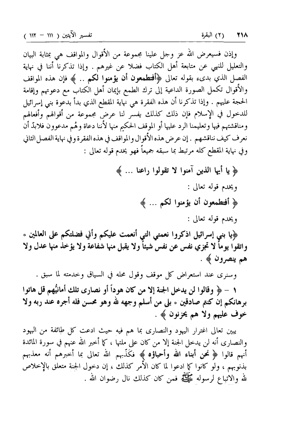 1 - وَقالُوا لَنْ يَدْخُلَ الْجَنَّةَ إِلَّا مَنْ كانَ هُوداً أَوْ نَصارى تِلْكَ أَمانِيُّهُمْ قُلْ هاتُوا بُرْهانَكُمْ إِنْ كُنْتُمْ صادِقِينَ* بَلى مَنْ أَسْلَمَ وَجْهَهُ لِلَّهِ وَهُوَ مُحْسِنٌ فَلَهُ أَجْرُهُ عِنْدَ رَبِّهِ وَلا خَوْفٌ عَلَيْهِمْ وَلا هُمْ يَحْزَنُونَ.