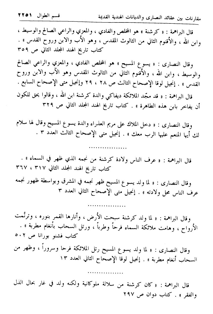 قال البراهمة: «عرف الناس ولادة كرشنة من نجمه الذي ظهر في السماء».
